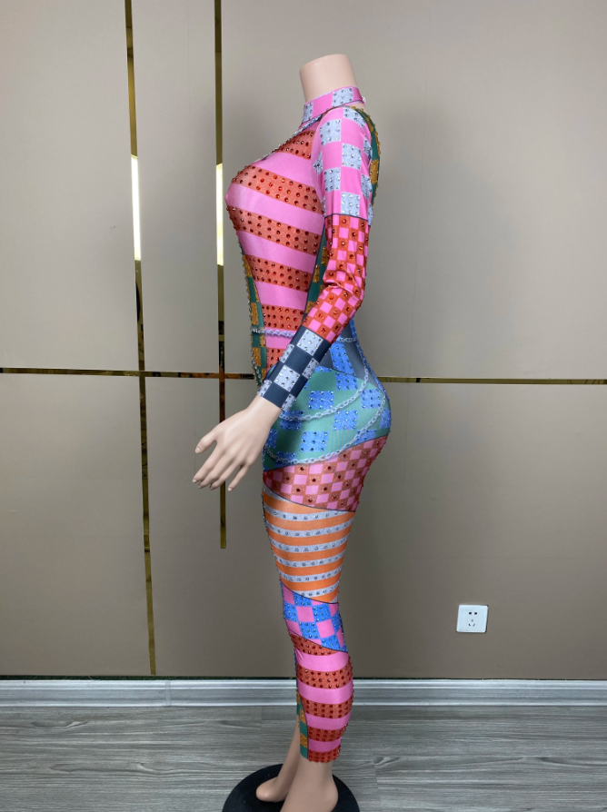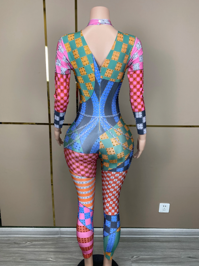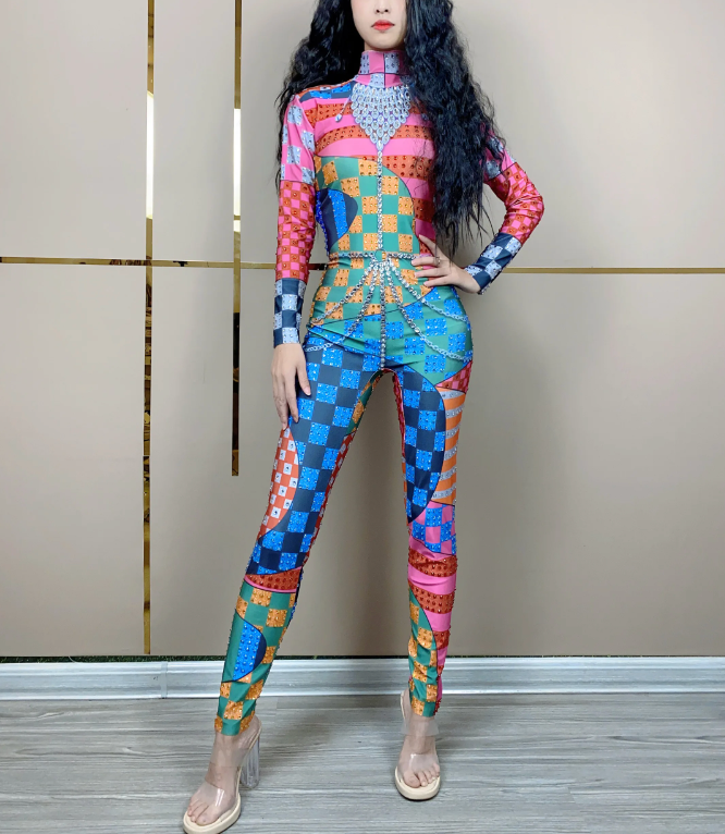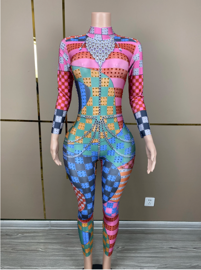 Rhinestone Jumpsuit Sparkling Bodysuit Rhinestone Beyonce Costume Party Outfit Party Performance Drag Costume