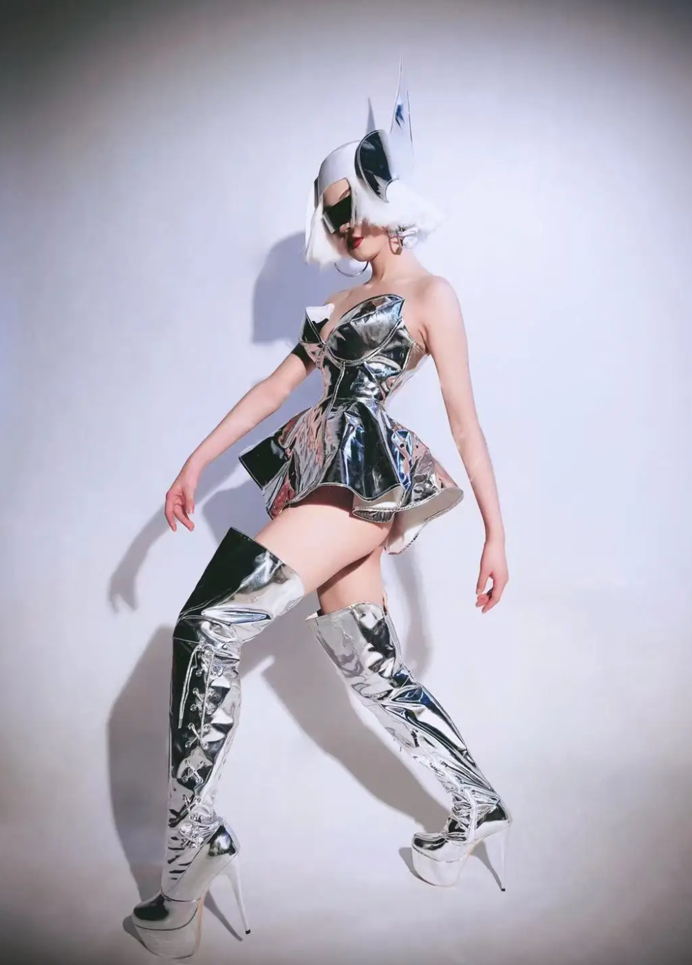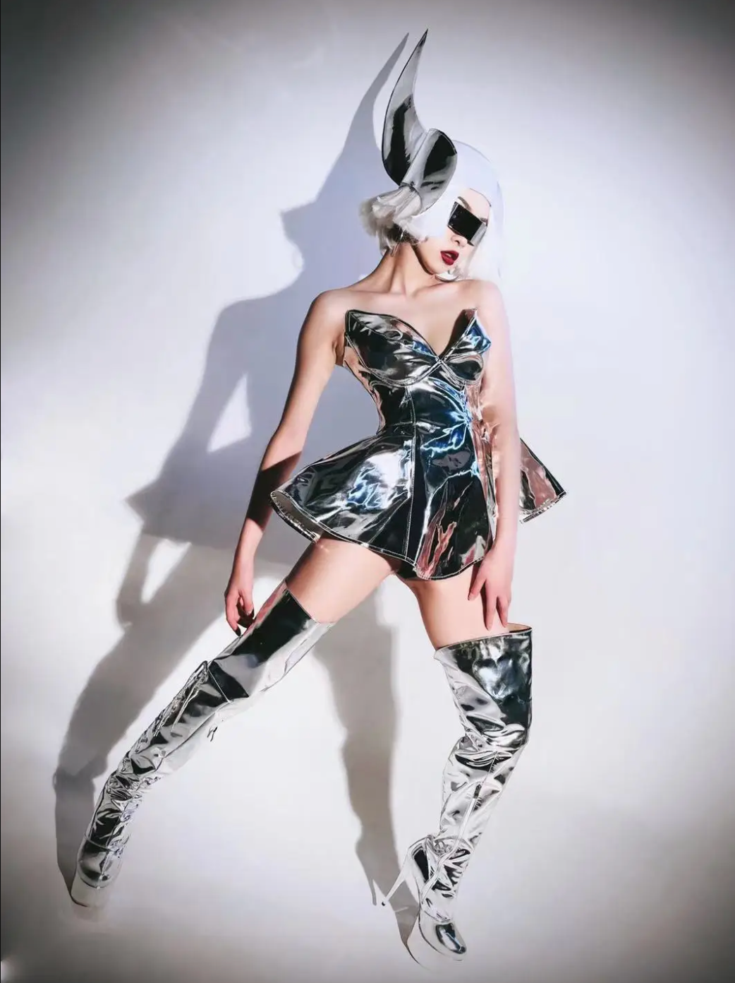 Futuristic Robot Costume Metallic Dress, Stage Performance Dress With Sunglasses.