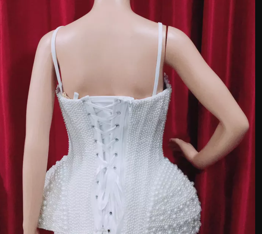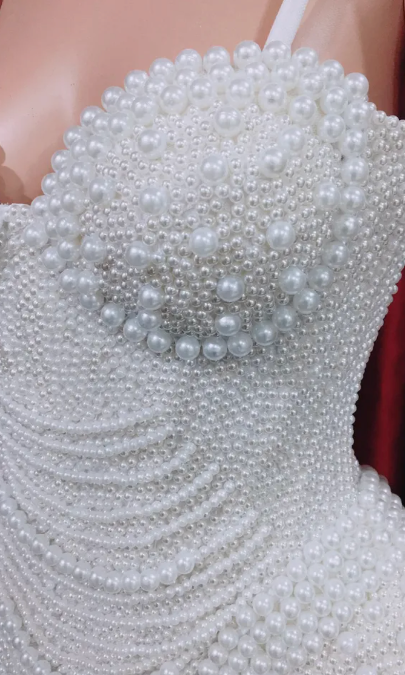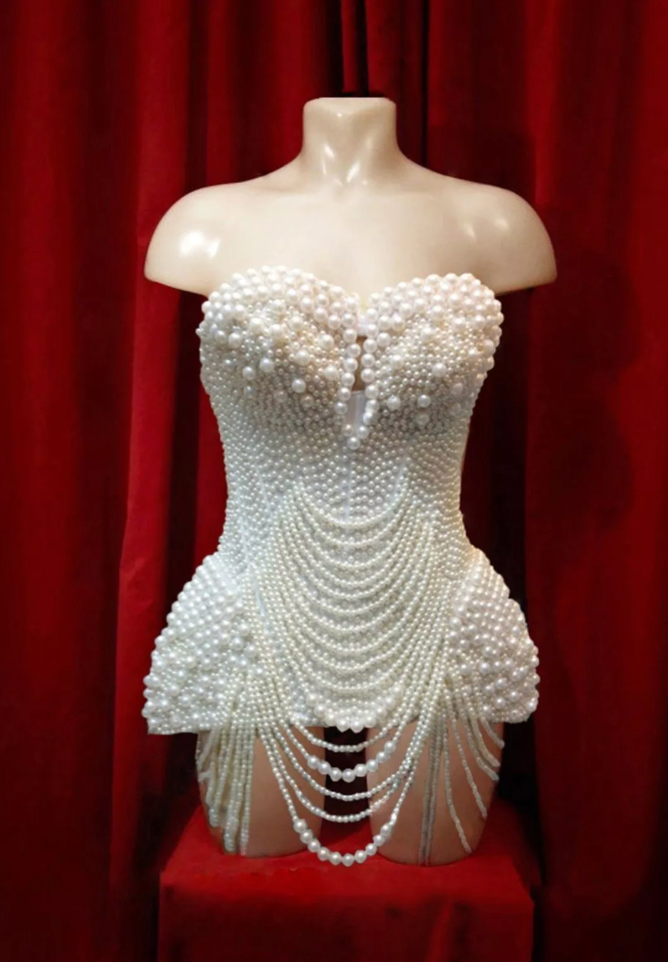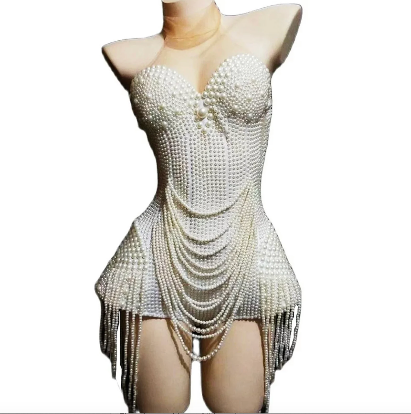 Embellished Bodysuit Beaded Dress Bridal Bachelorette Birthday Dress Pearl Costume Leotard Catsuit