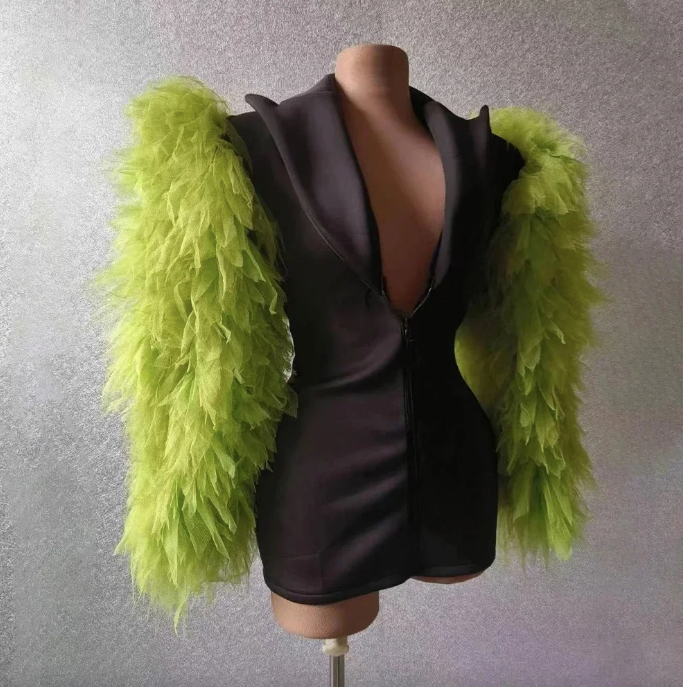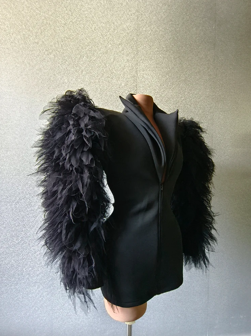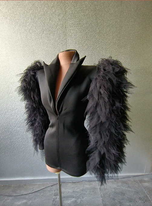 Jacket Dress Fluffy Black Dress Party Dress Crystal Blazer Drag Costume