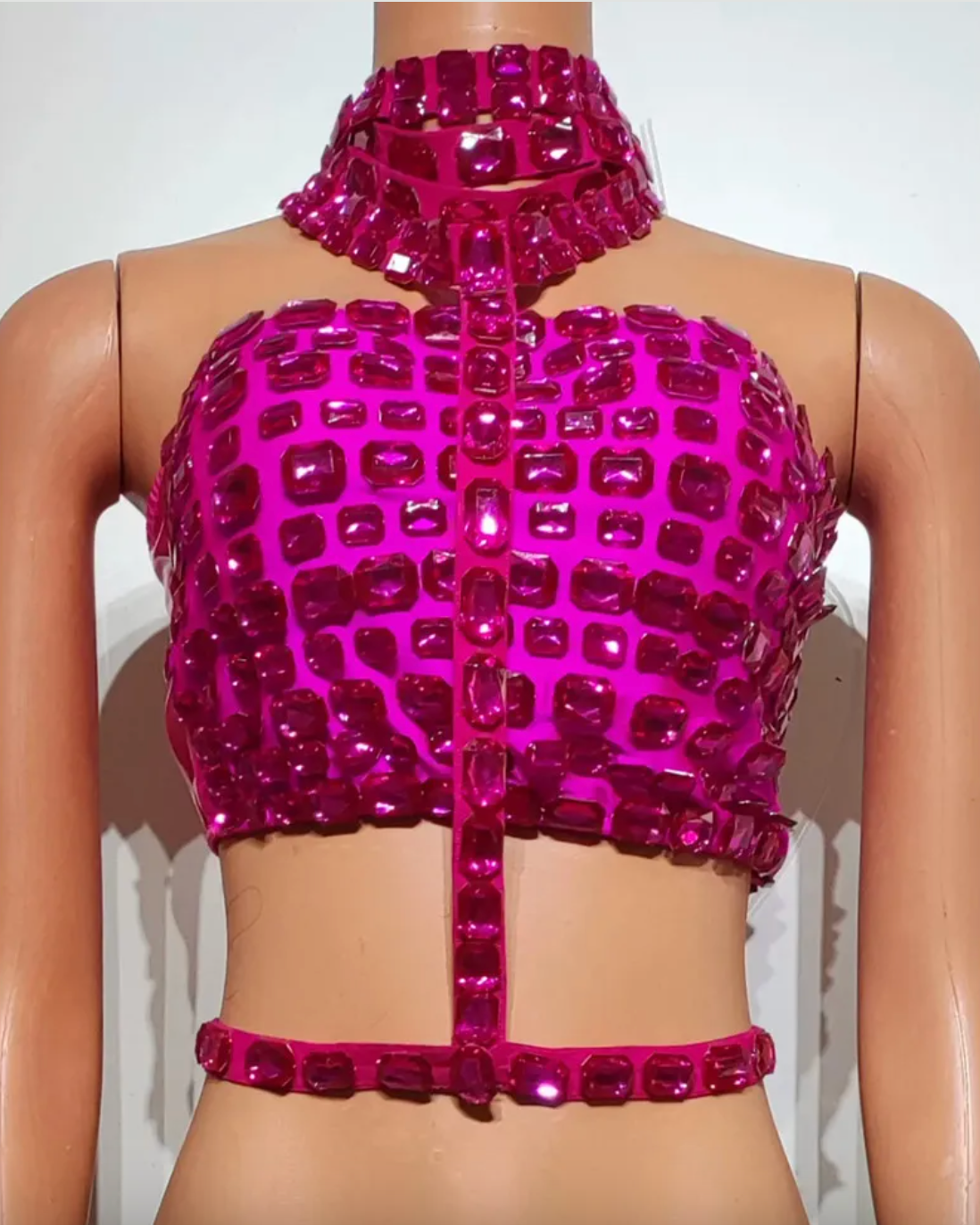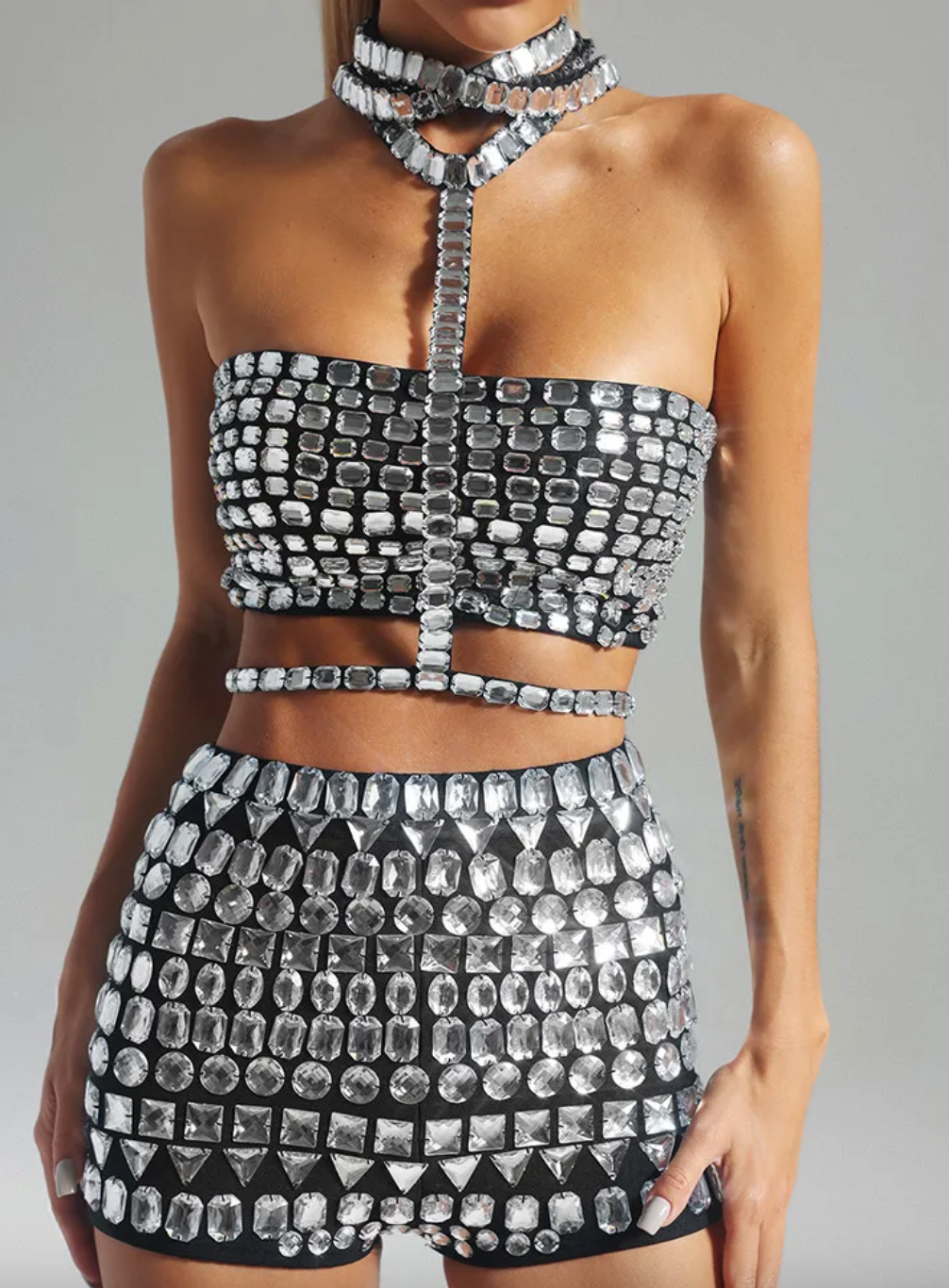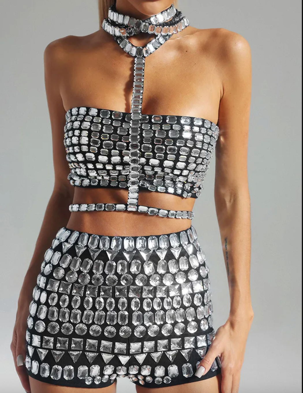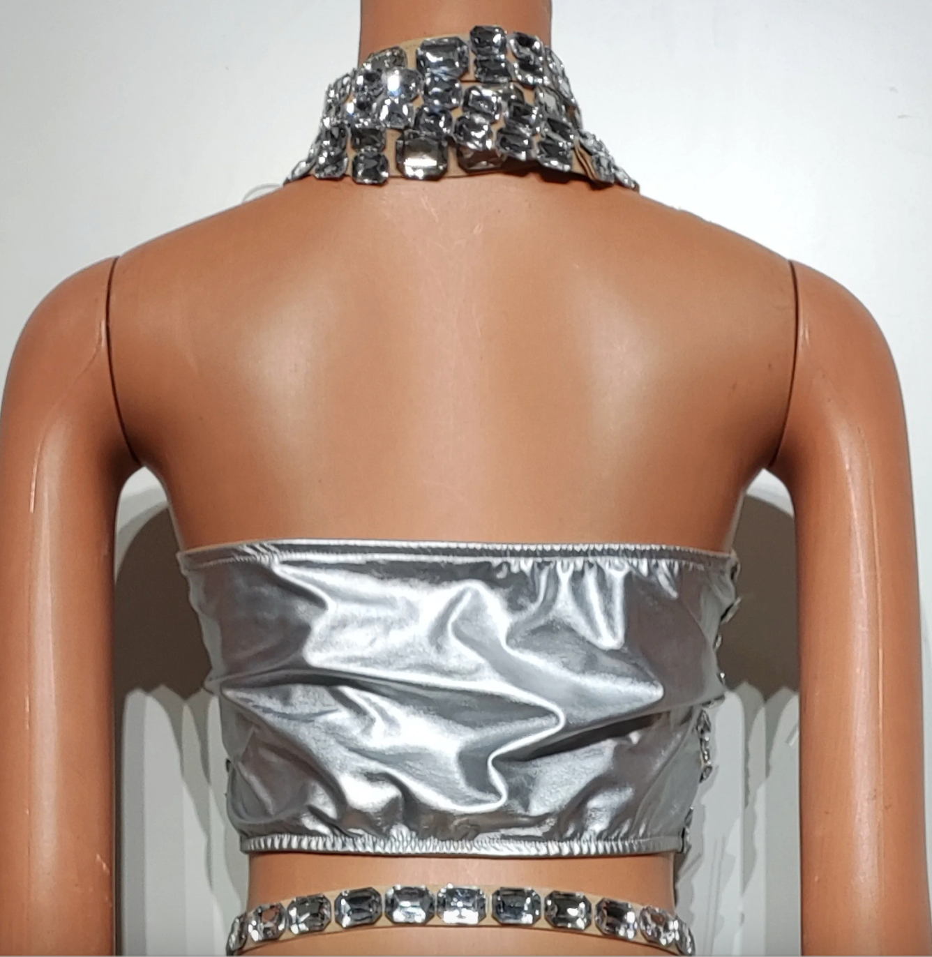 Kim K Inspired Skims Swarovski Dress Rhinestone Crystal Chain Backless Two-Pieces Set Birthday Evening Party Celebrate Costume Nightclub Outfit