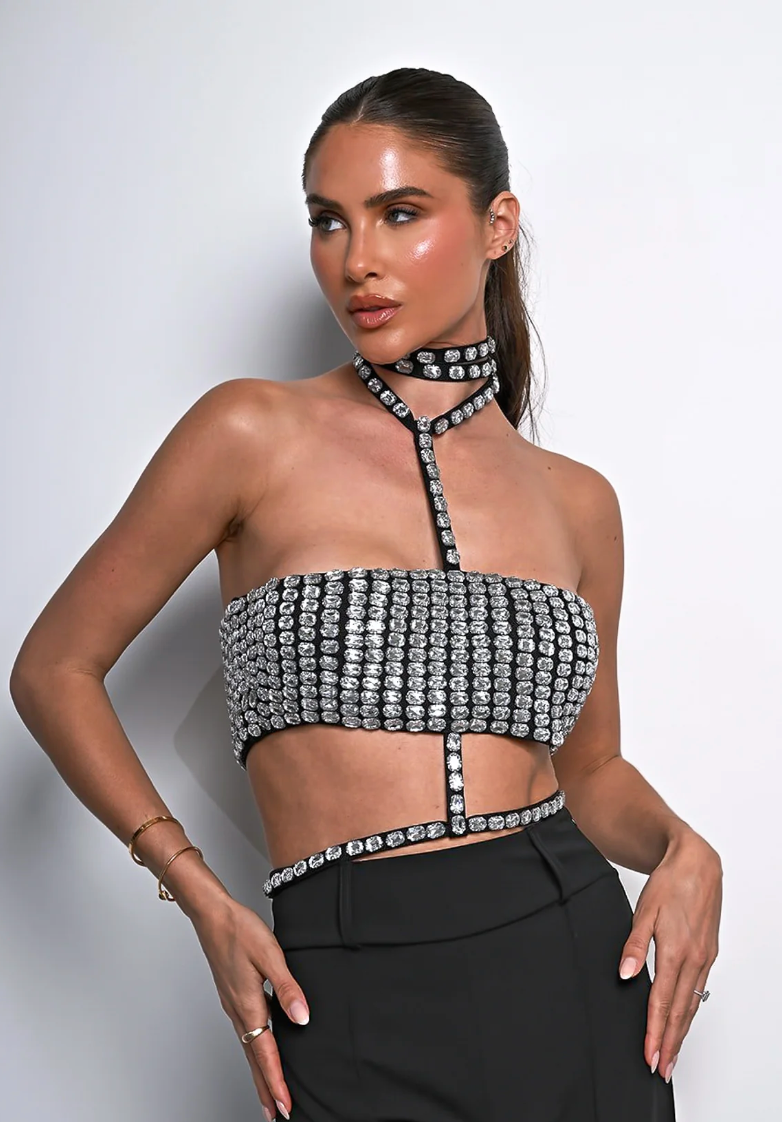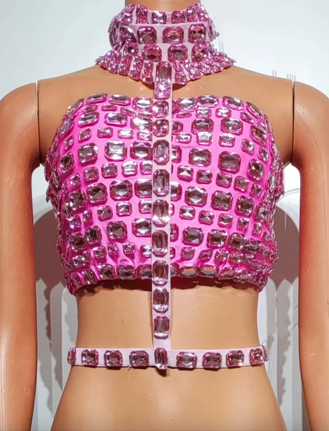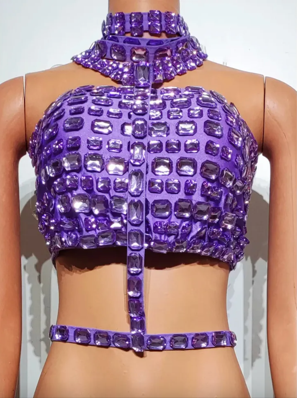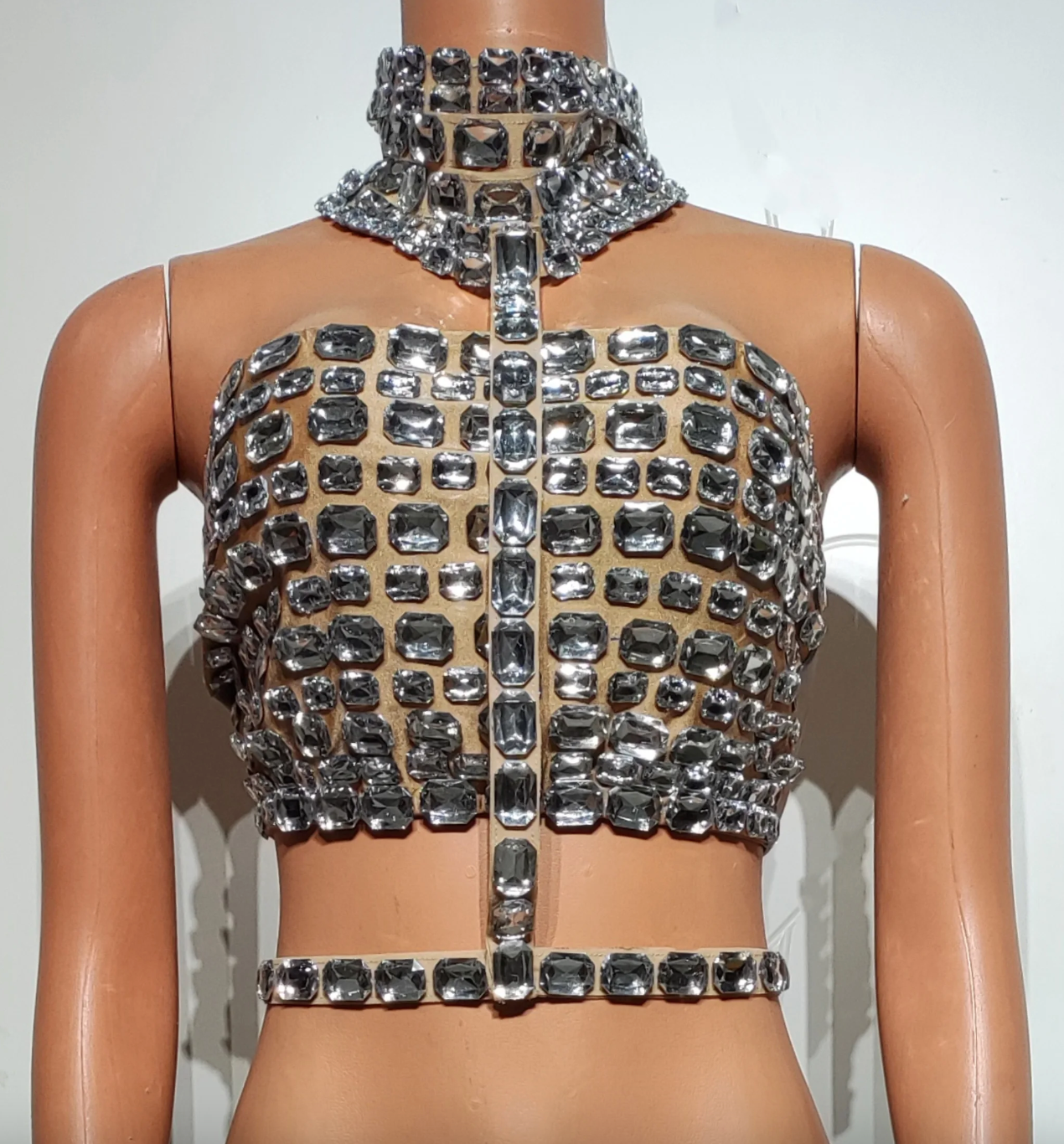 Kim K Inspired Skims Swarovski Dress Rhinestone Crystal Chain Backless Two-Pieces Set Birthday Evening Party Celebrate Costume Nightclub Outfit