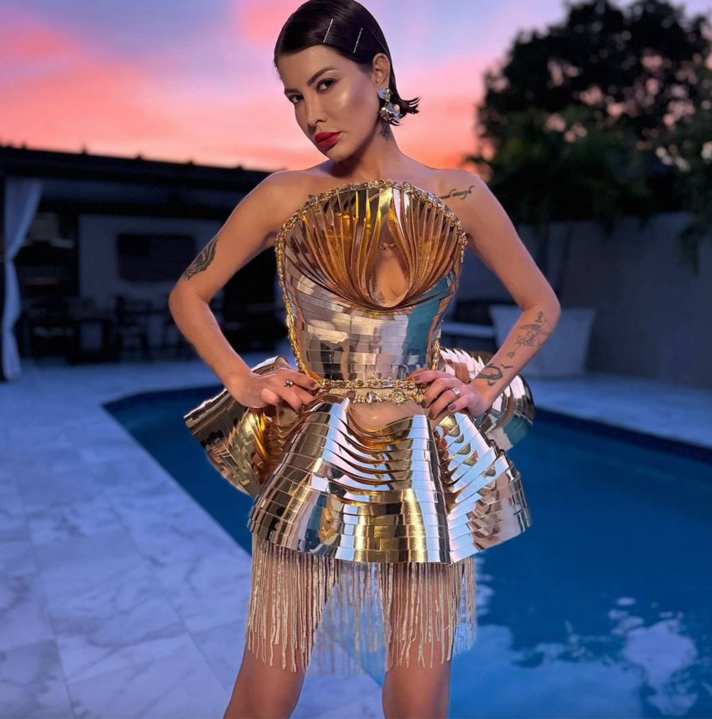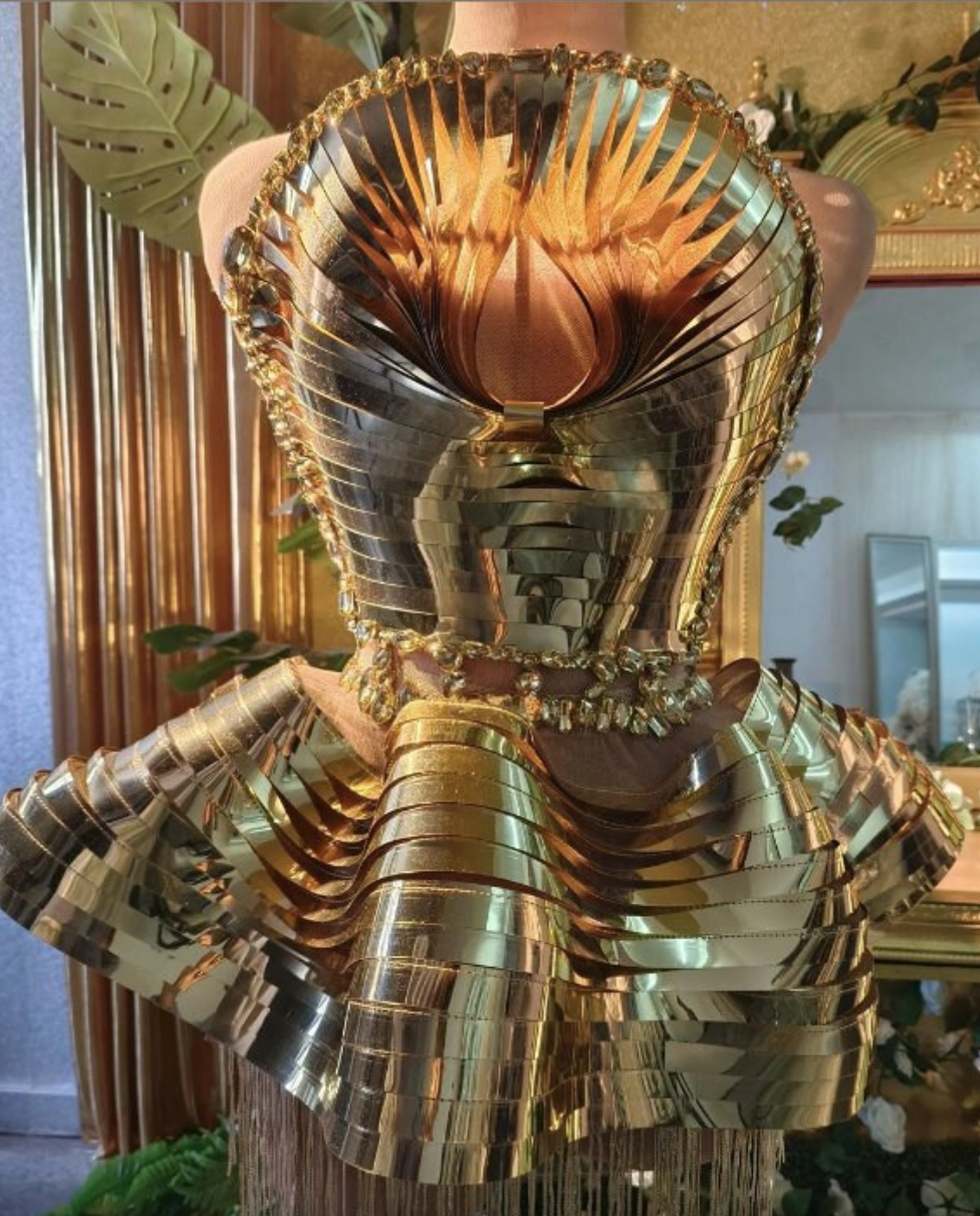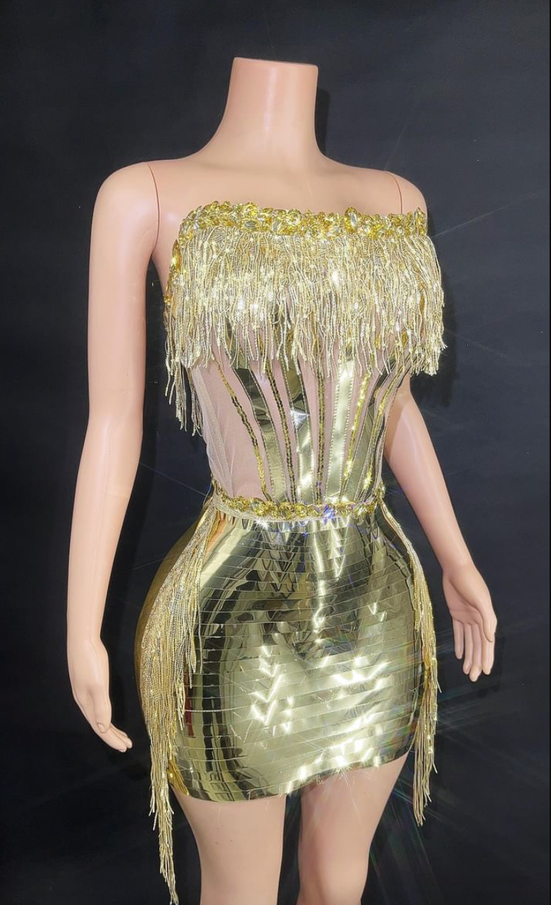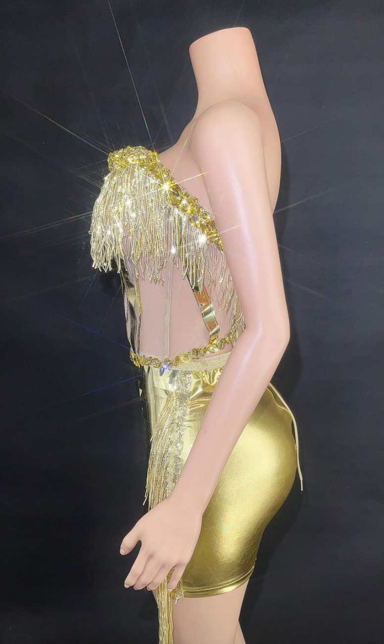 Futuristic Robot Costume Metallic Dress, Stage Performance Dress. Halloween Goddess Costume Gold Dress. Ready to Ship Birthday Dress Party Costume Performance Outfit For Women and Drag Queen. Dance Costume Showgirls