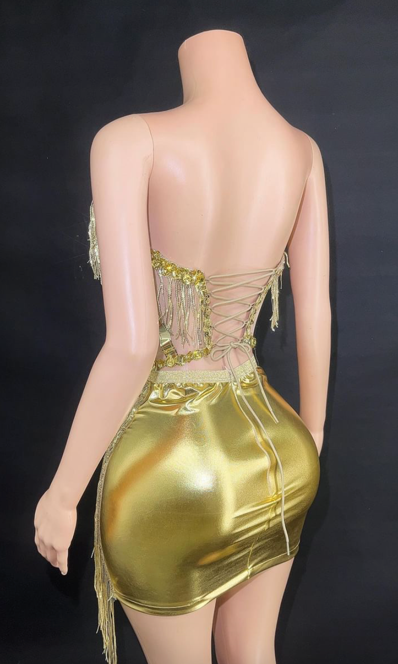 Party Dress Metallic Gold Dress Corset Queen Birthday Dress Goddess Party Costume
