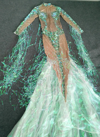 Sequin Long Mermaid Dress Costume Performance Outfit