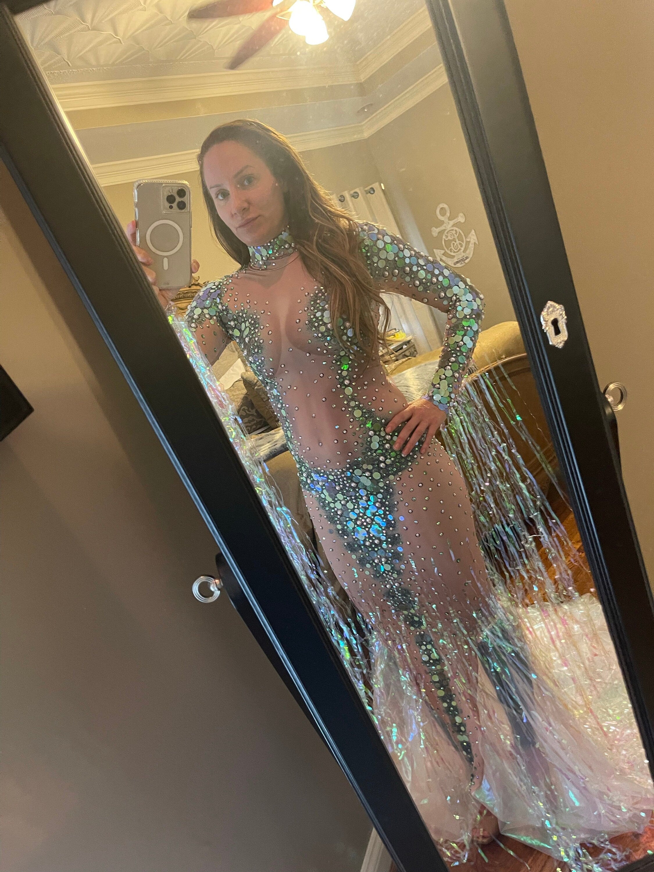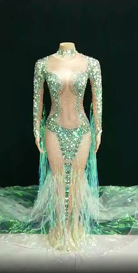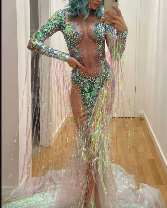 Party Dress Mermaid Costume Gown Sequin Dress Fringe Tassel Halloween Ivy Costume Drag Queen Costume.