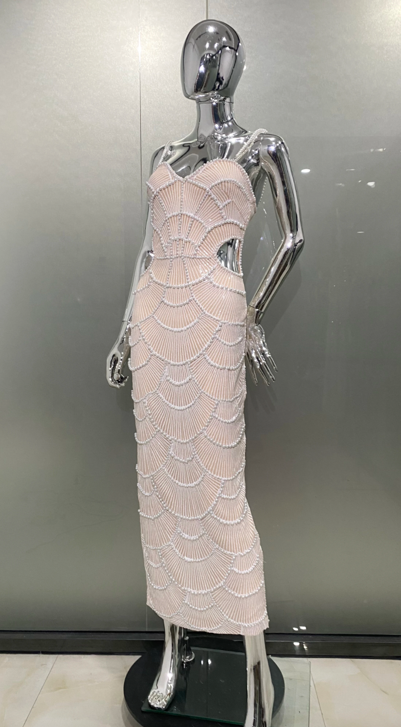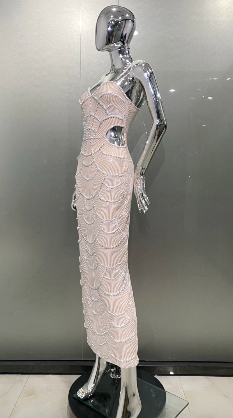 Party Dress Gown Maxi Pearl Dress Sparkle Prom Dress Crystal Performance outfit