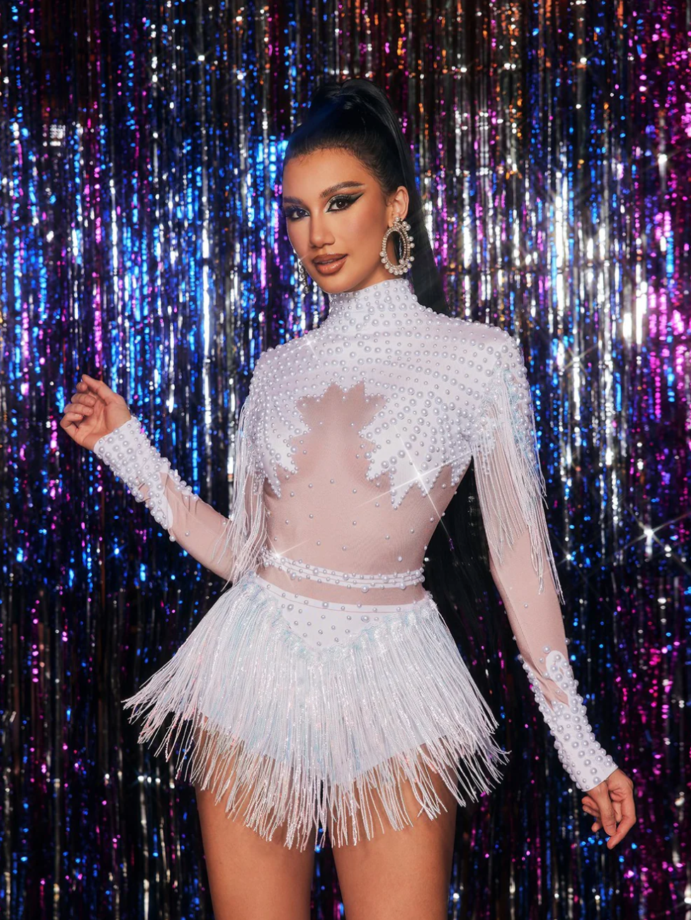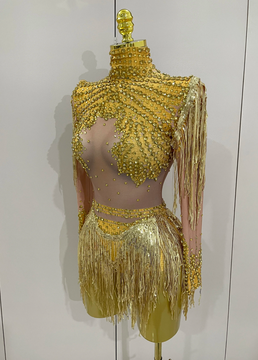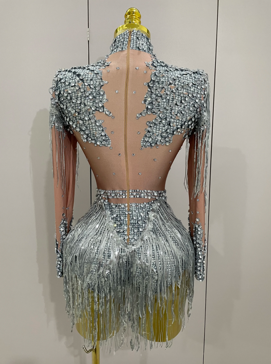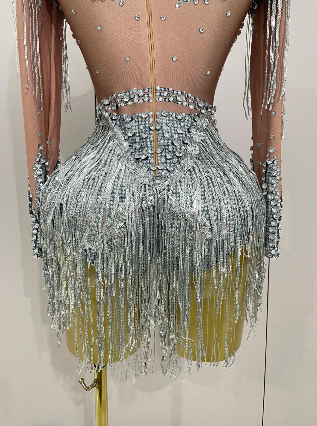 Silver Dress Gold Dress Sequin Tassel Stretch Bodysuit Party Dress Latin Dance Stage Wear Nightclub DJ Singer Dance Costume