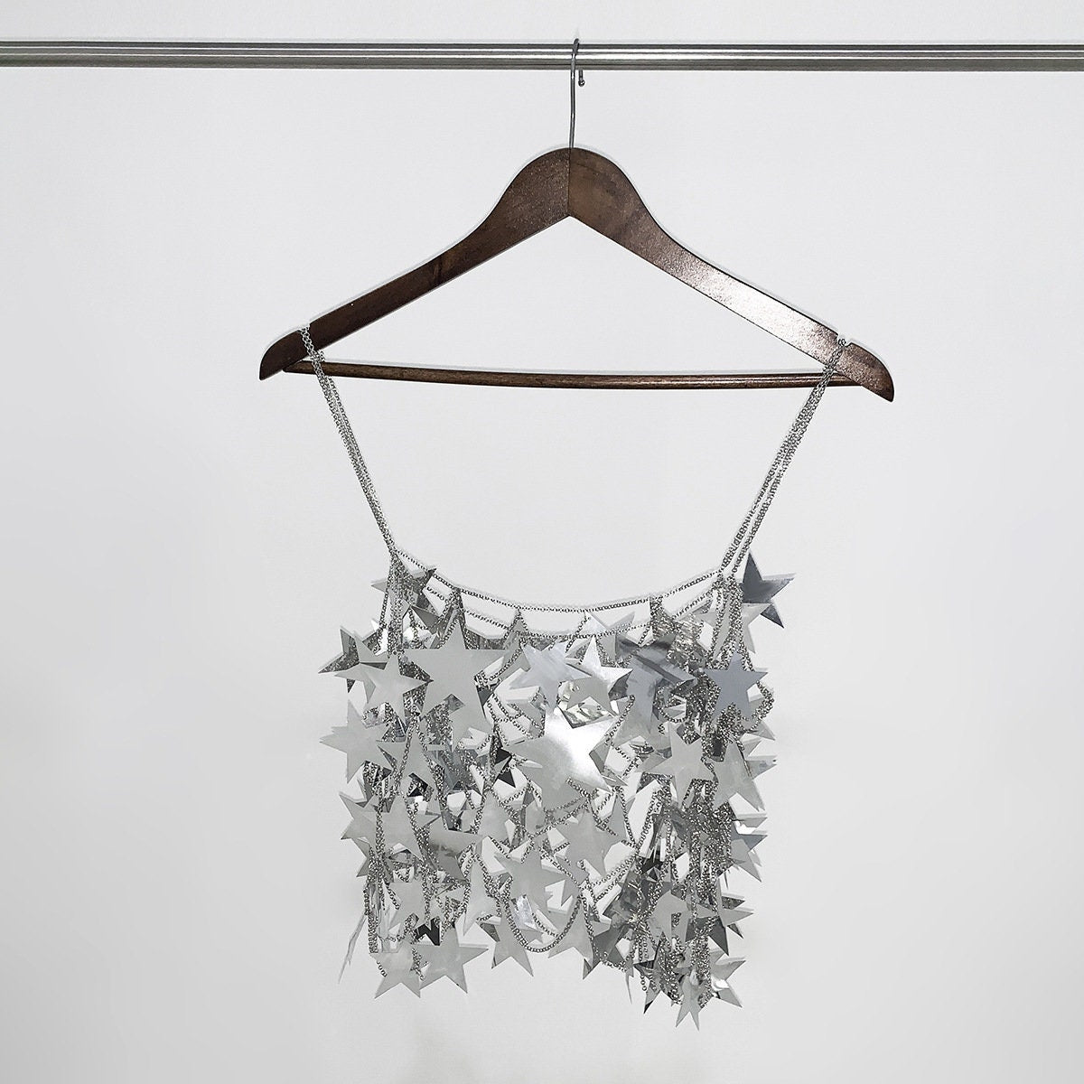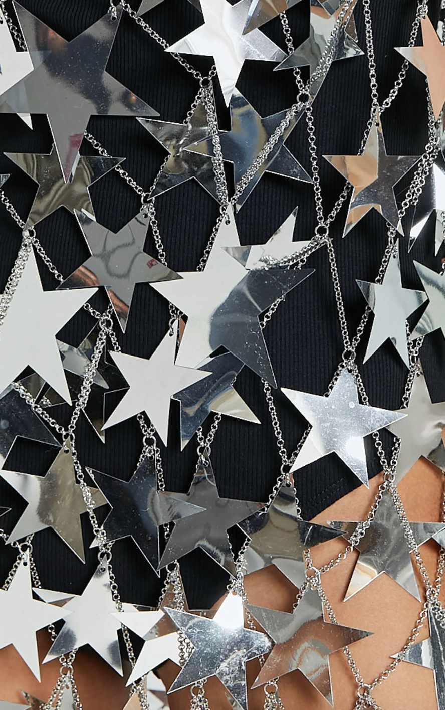 Festival Outfit Mirror Set Dress with Chain Jewelled Fringe Stars Tassel Skirt Sequin Rave Rhinestone Bachelorette Dress Body Chain Dress