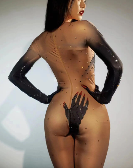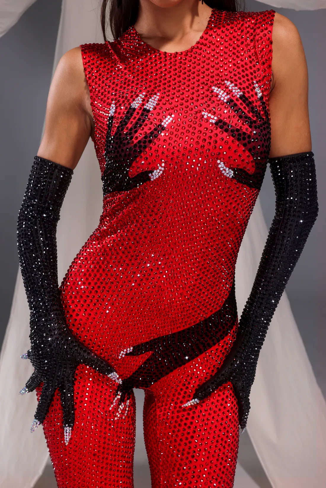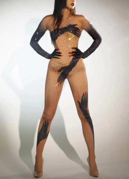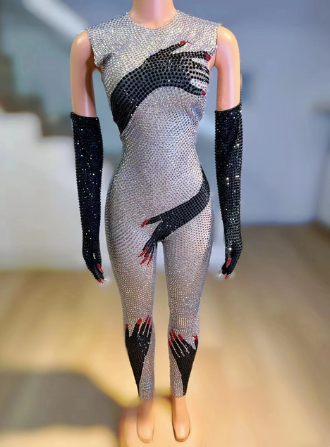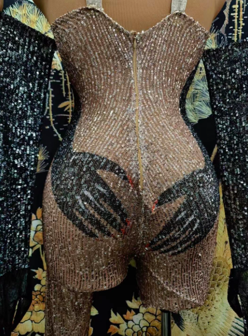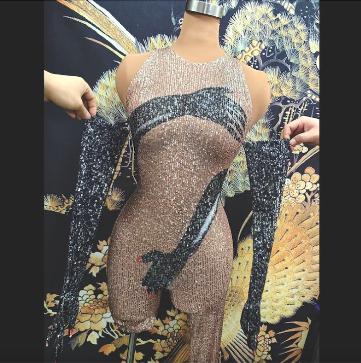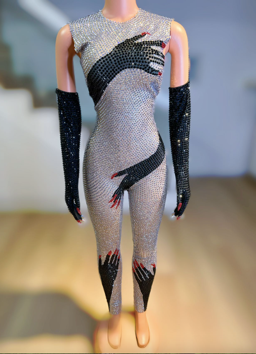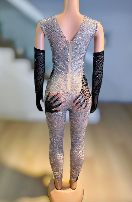Beyoncé Renaissance tour Costume Sparkling Jumpsuit with rhinestone gloves.