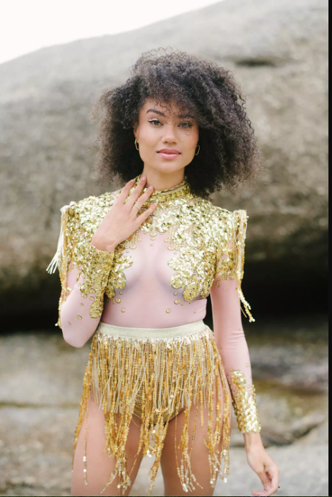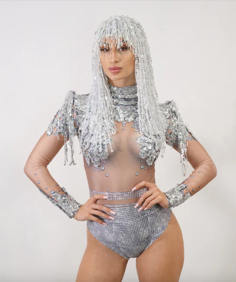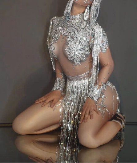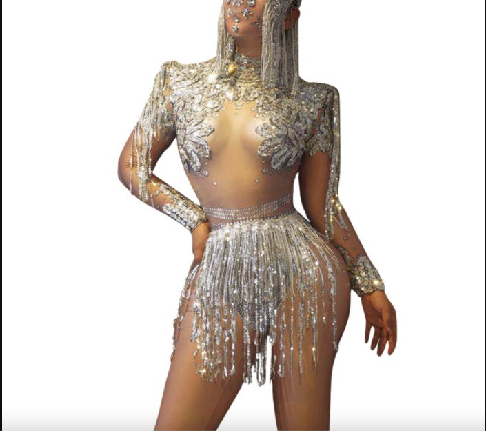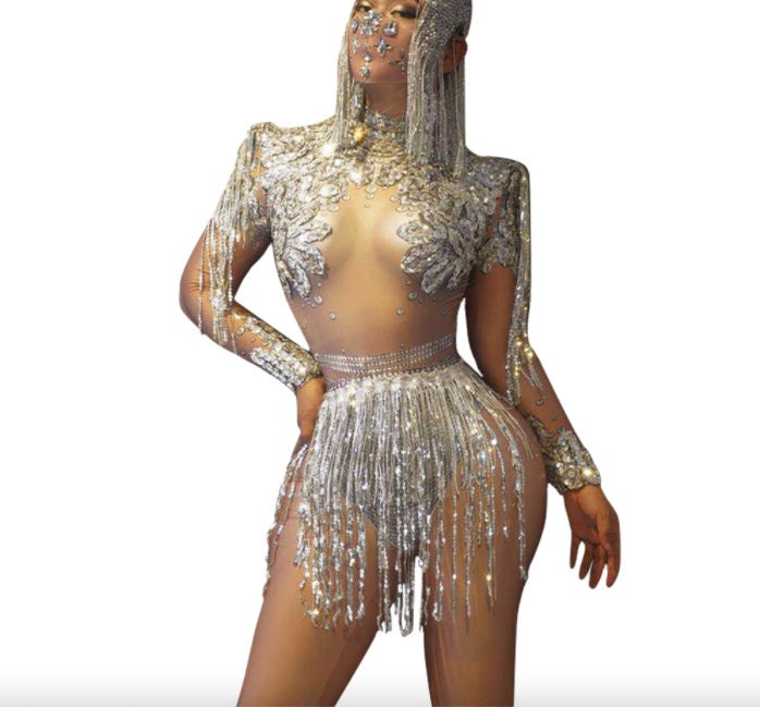 Ready to Ship Dance Performance Costume Bodysuit with fringe skirt headdress optional. Ideal costume, party or festival.