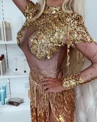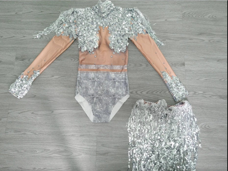 Gold Sequin Bodysuit Set Rhinestone Jumpsuit Performance Party Dress Costume Exotic Dancer