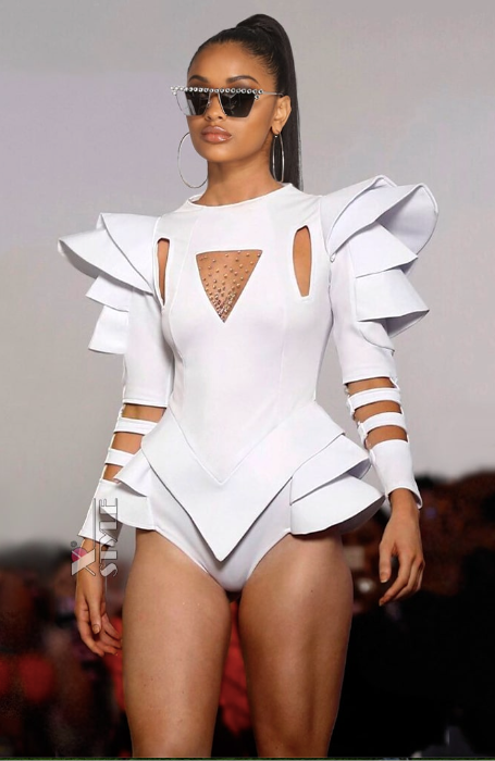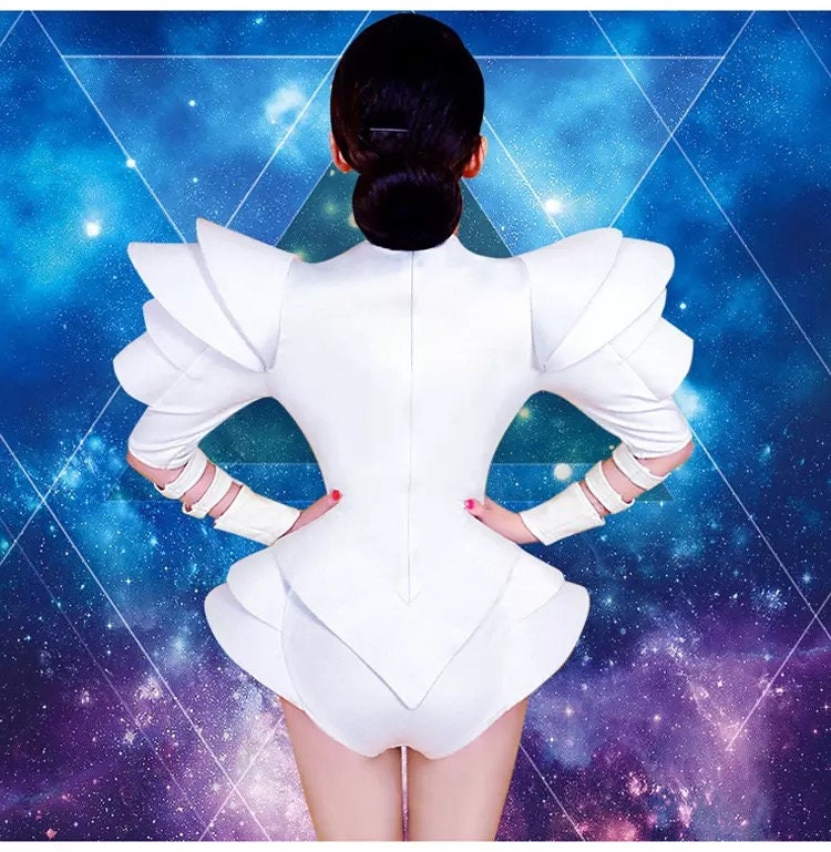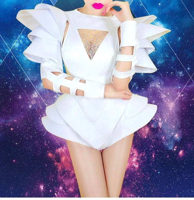 White Bodysuit Dress Rave Space Futuristic Jumpsuit Costume Dress Lady Gaga Costume