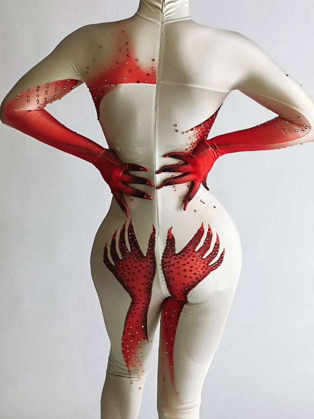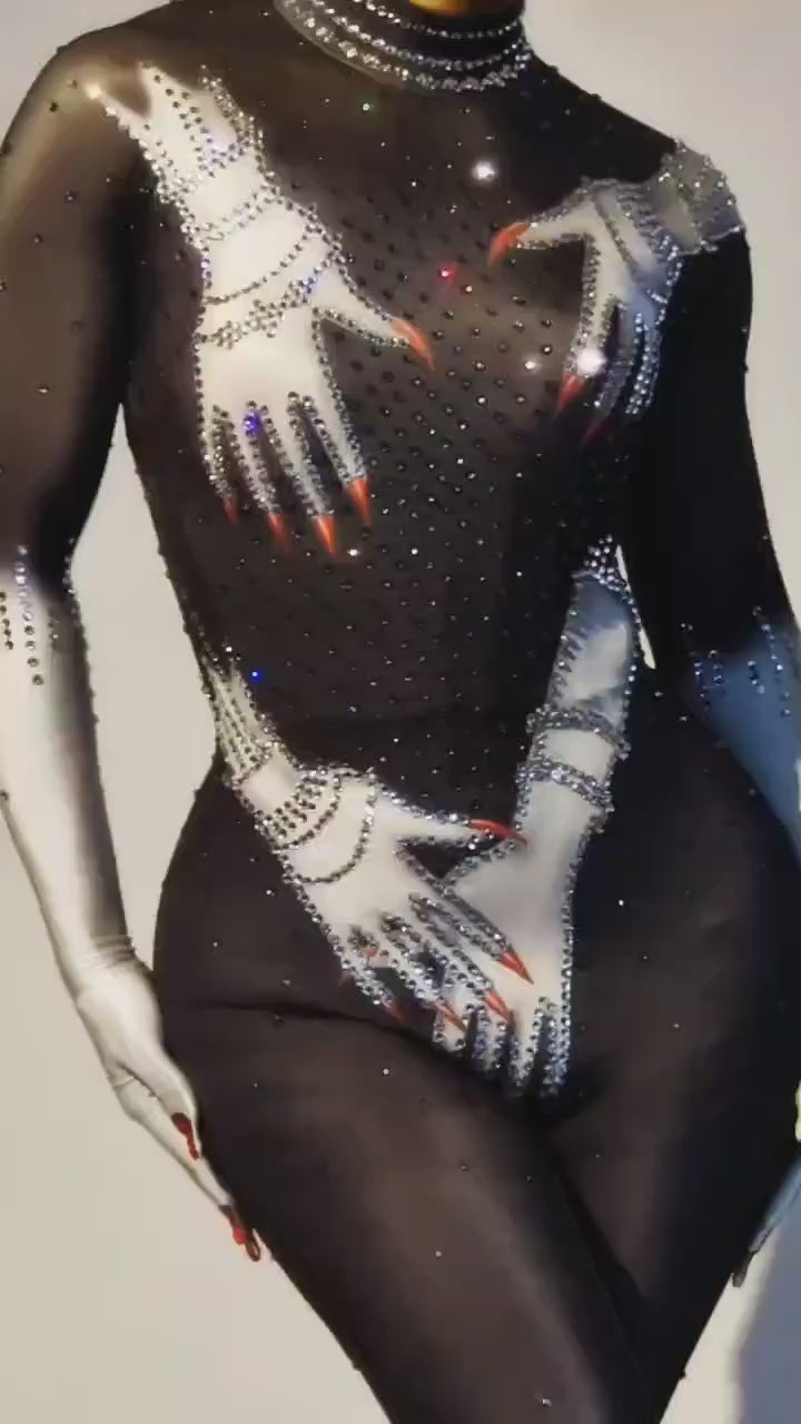 Beyoncé Renaissance tour Costume Sparkling Jumpsuit with rhinestone gloves.
