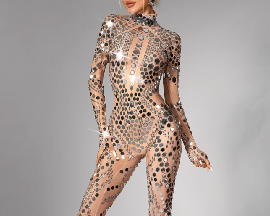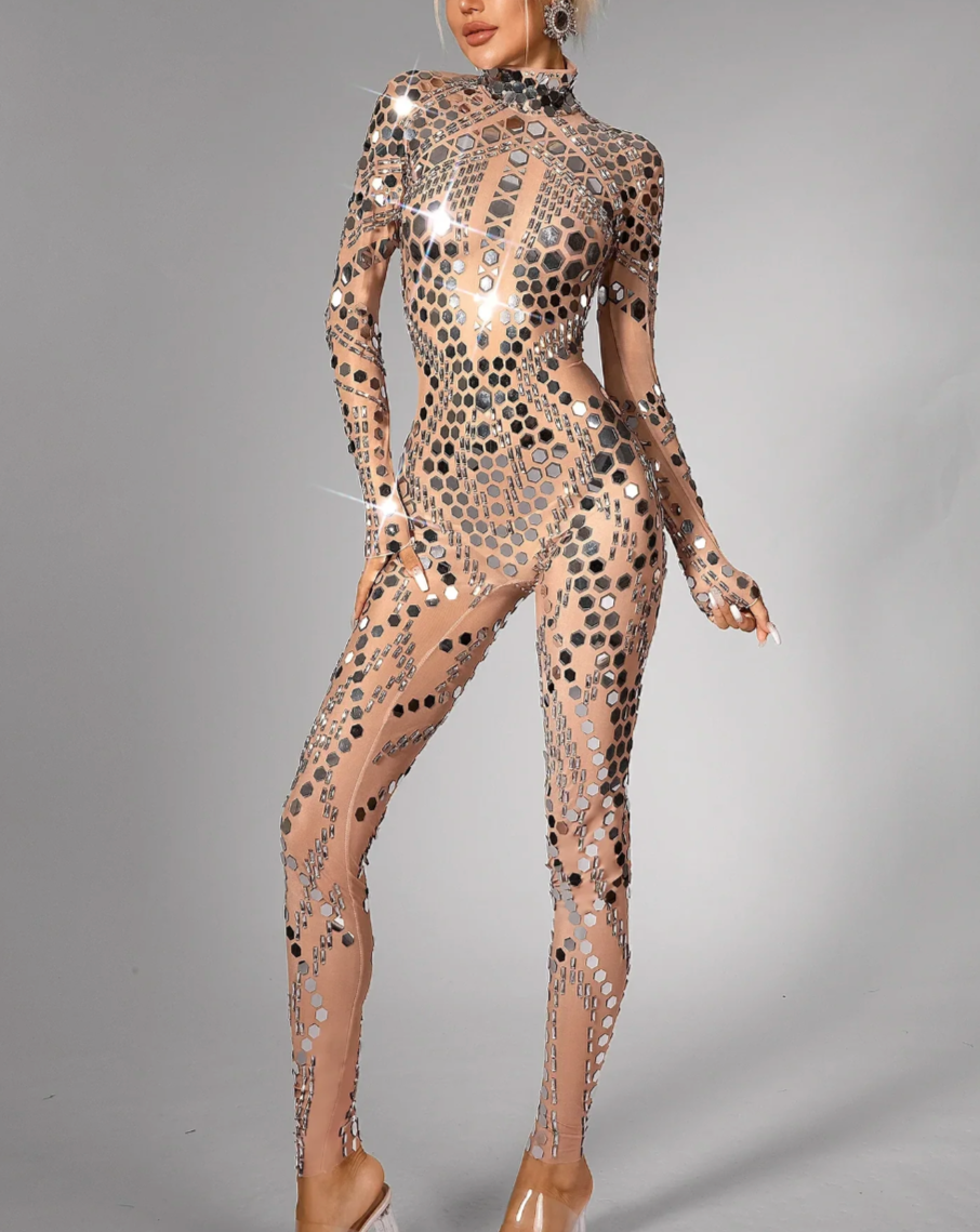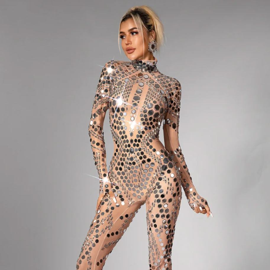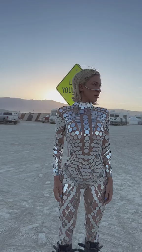 Festival Outfit Mirror Jumpsuit Bodysuit Futuristic Sequin Disco Space Rave Costume Party Costume