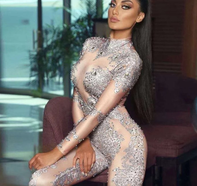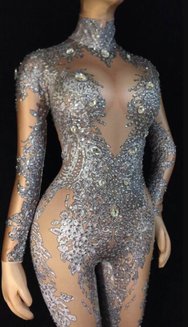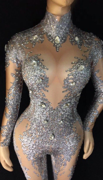 Rhinestone Jumpsuit Embellished Bodysuit Crystal Catsuit Party Festival Clothing