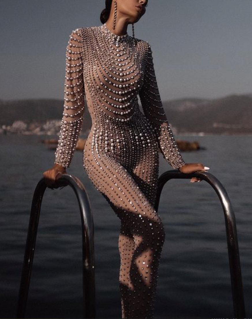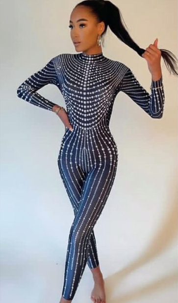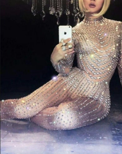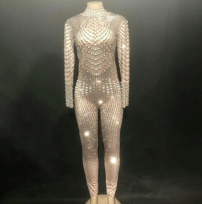 Rhinestones Jumpsuit Crystal Festival Outfit Rave Outfit Party Sequin Catsuit