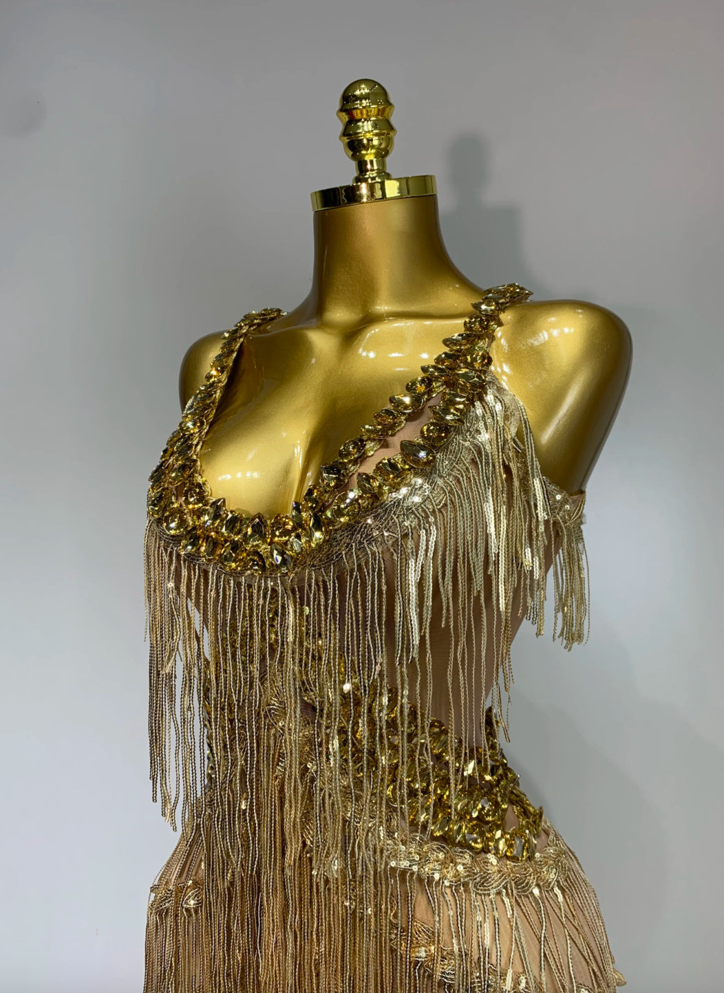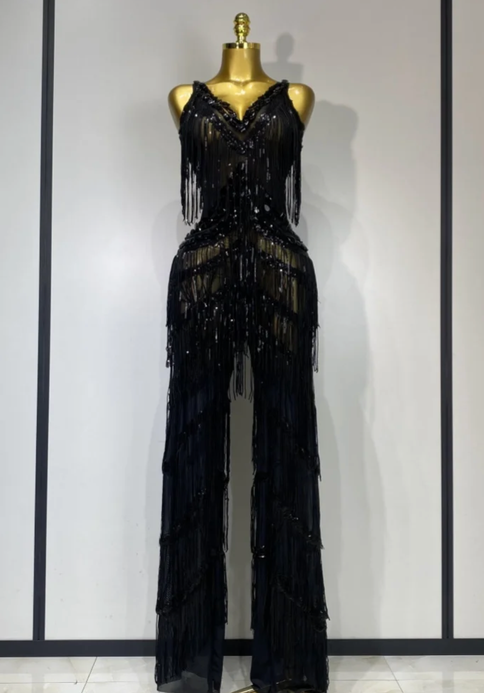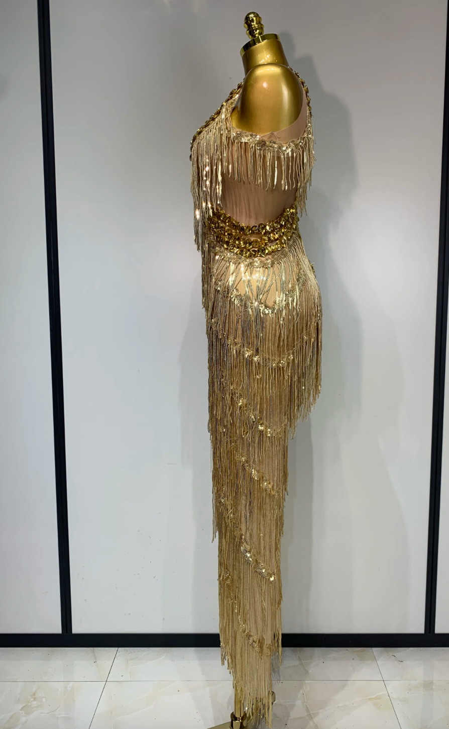 Fringe Jumpsuit for Women Gold tassel performance clothing for women bodysuit NEW IN