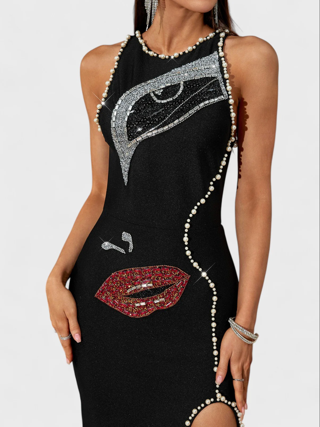 Strapless Sparkling Diamond Evening Gown | Sexy Party Split Dress