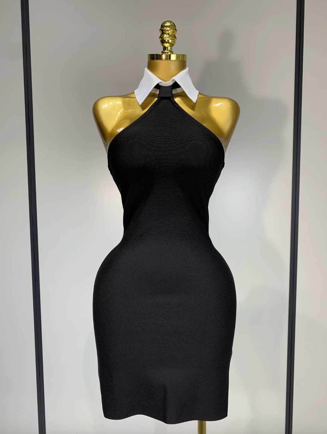 Black Dress Backless White Shirt Collar Black Mini Bodycon Black Bandage Dress Elegant Evening Club Party Luxury Birthday Dresses