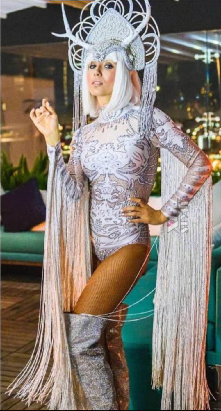 Stage Performance Bodysuit Dress long sleeves Tassel Cowgirl Costume Rhinestone Stars Pearls Crystal Silver & Black Drag Queen Clubwear Bodysuit Jumpsuit with Fringe. Bodysuit: Inspired Vegas stage performance costume Black & Silver long sleeves tassel covered with silver stars & pearls Size: S,M,L Occasions: Bride Event, Coachella, Drag Queen Shows, Birthdays, Cowboys Festivals, Rave Parties, Vegas Stage performances ... Fringe Wig: Tassel Rhinestone One Size, Drag queen wigs, club wear.
