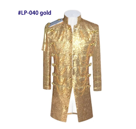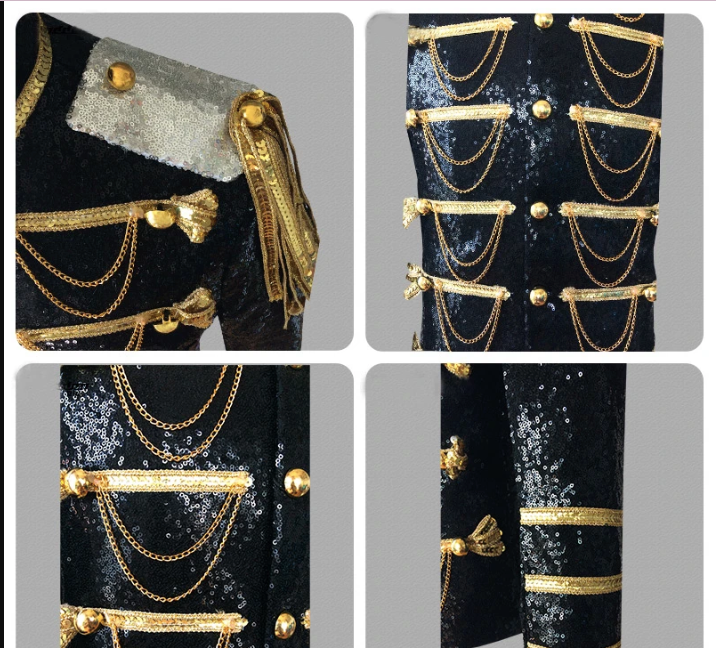 Designer Party Jacket Men's Tuxedo Blazer Gold Black Burning Man Captain