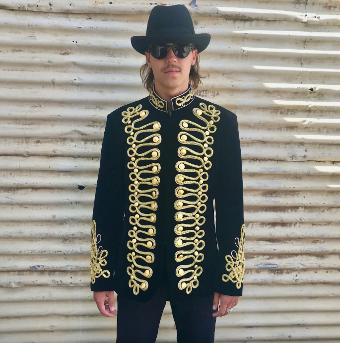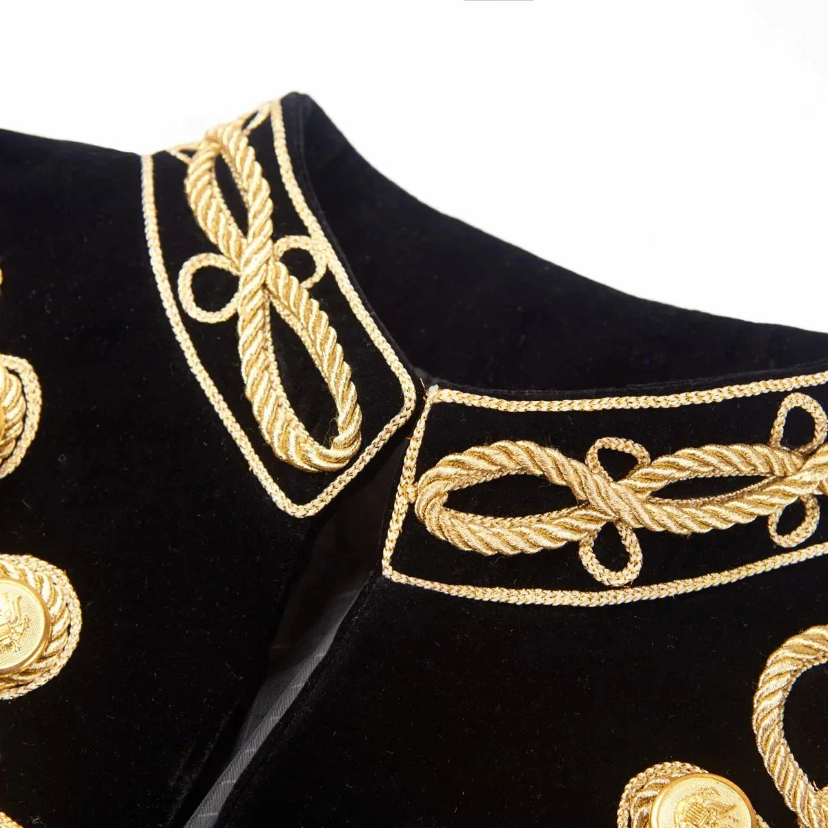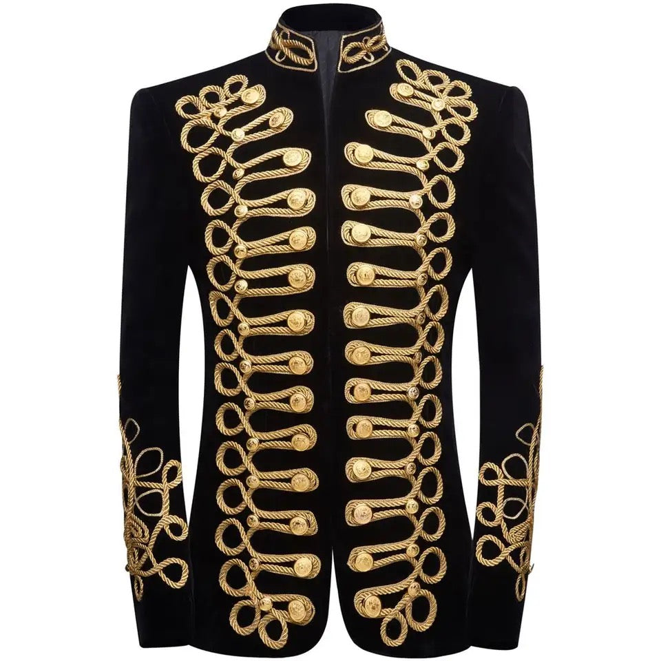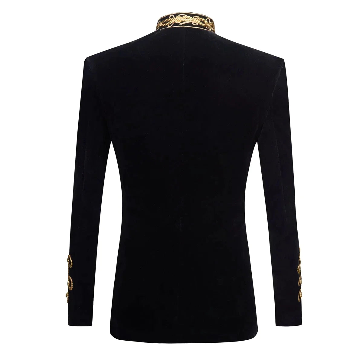 Designer Party Outfit Velvet Jacket For Men Tuxedo Blazer Red Gold Military Party Costume