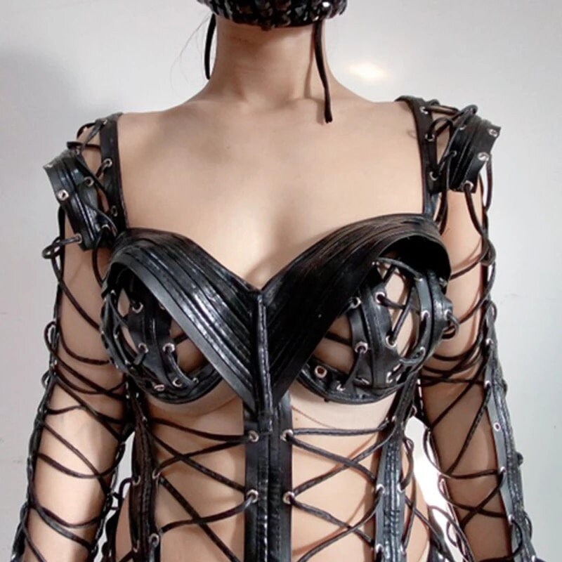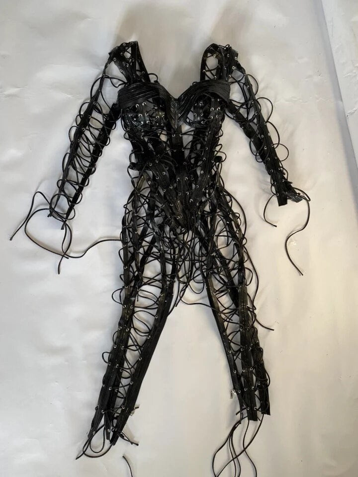 Black Lace Up Vegan Leather Jumpsuit Corset Gothic BDSM Outfit Performance outfit