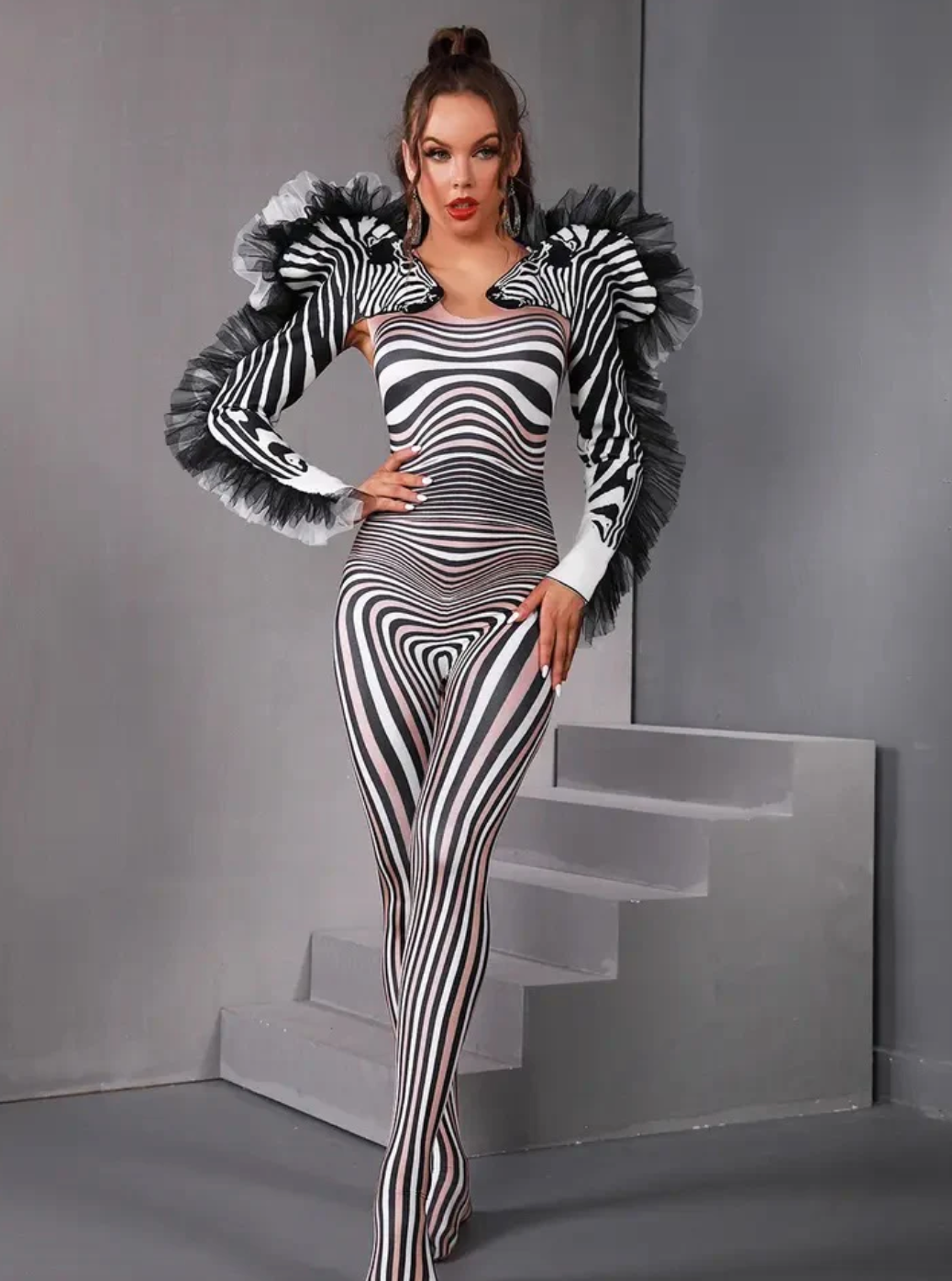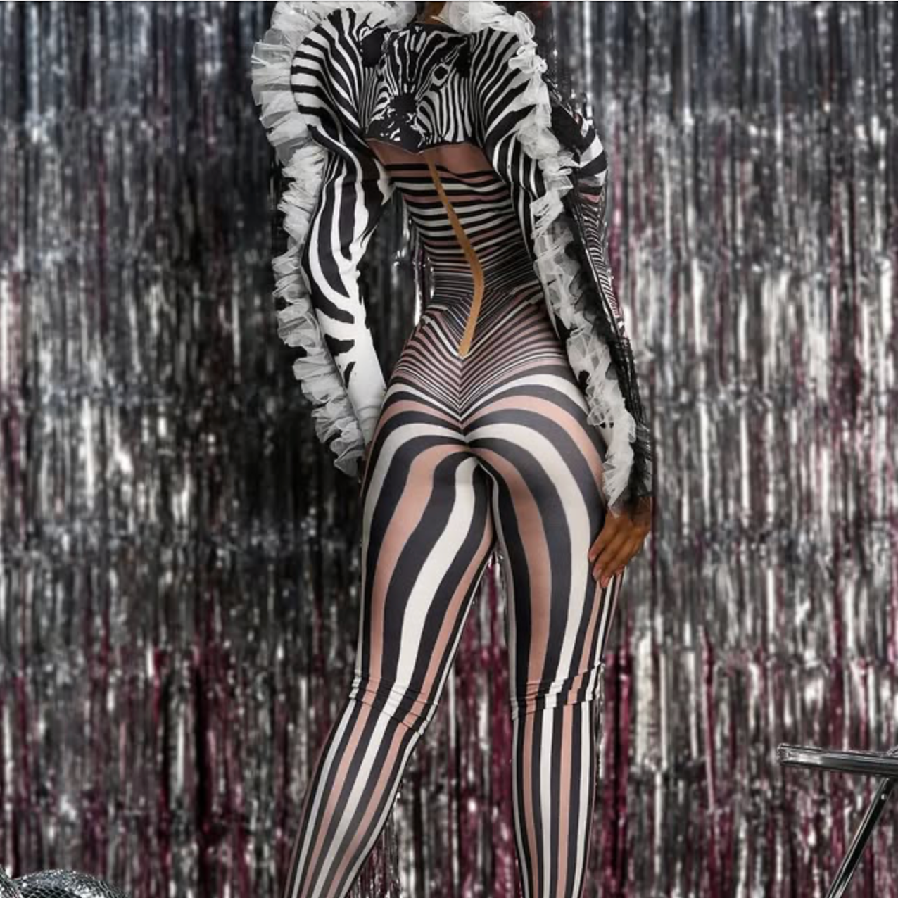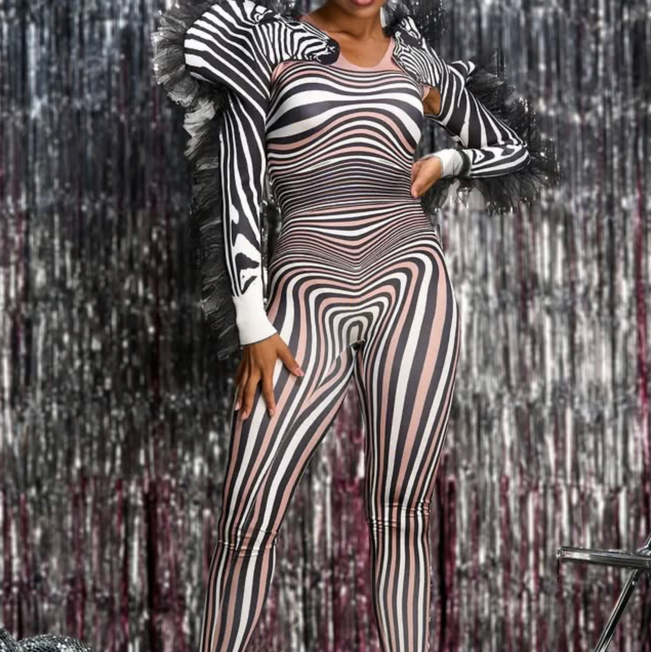Zebra Costume Hypnose Spiral Party Costume Fancy Halloween Costume Jumpsuit Celebrities Costume For Women and Men.  Performance Halloween