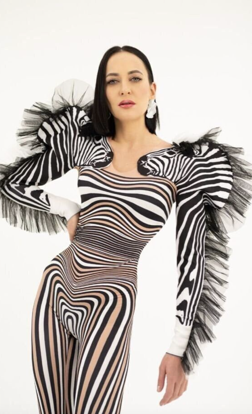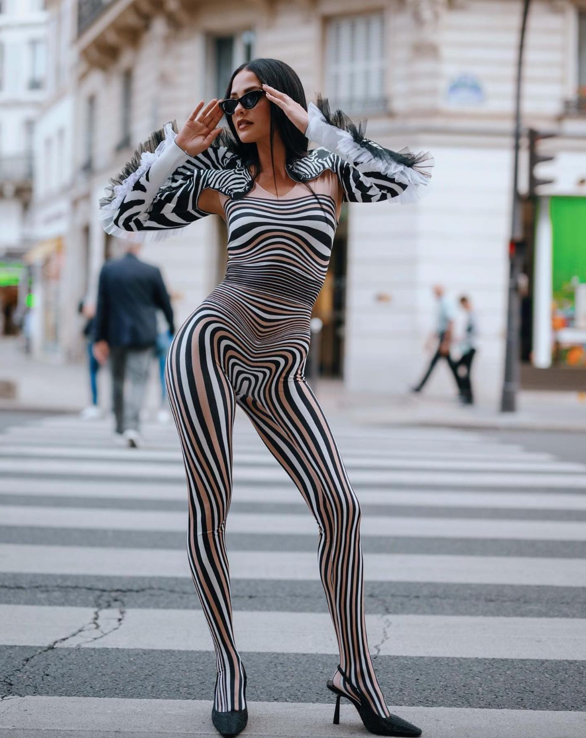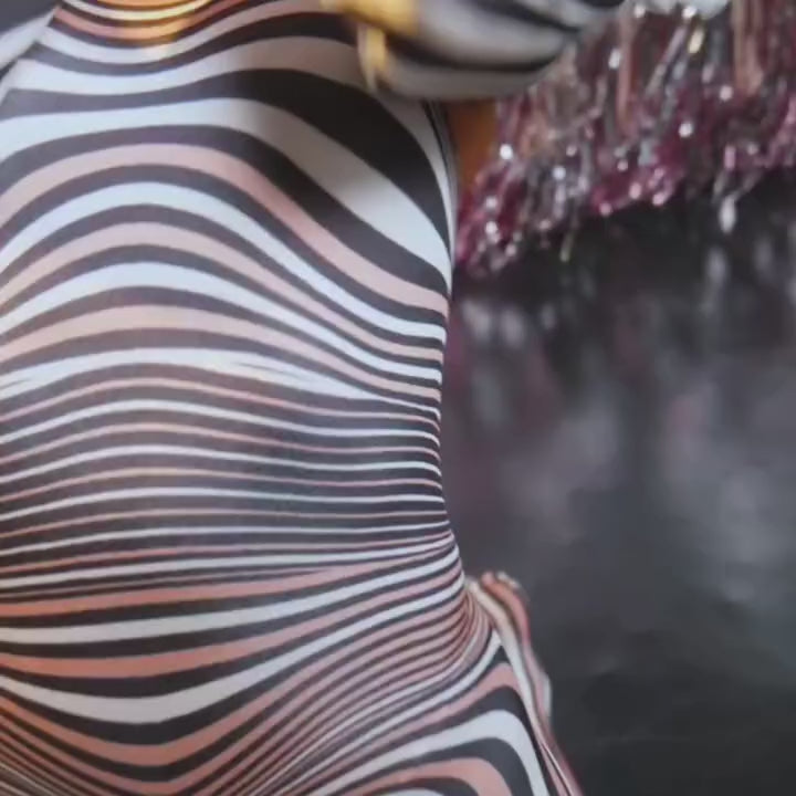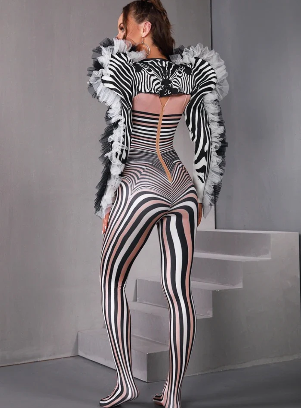 Zebra Costume Hypnose Spiral Party Costume Fancy Halloween Costume Jumpsuit Celebrities Costume For Women and Men.  Performance Halloween