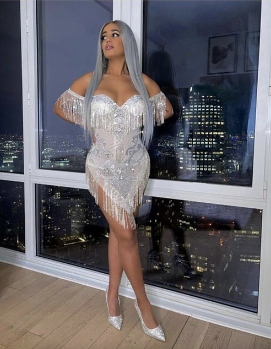 Sequin Dress Nude Fringe Crystal Embellished Bride Cowgirl Taylor Swift Costume