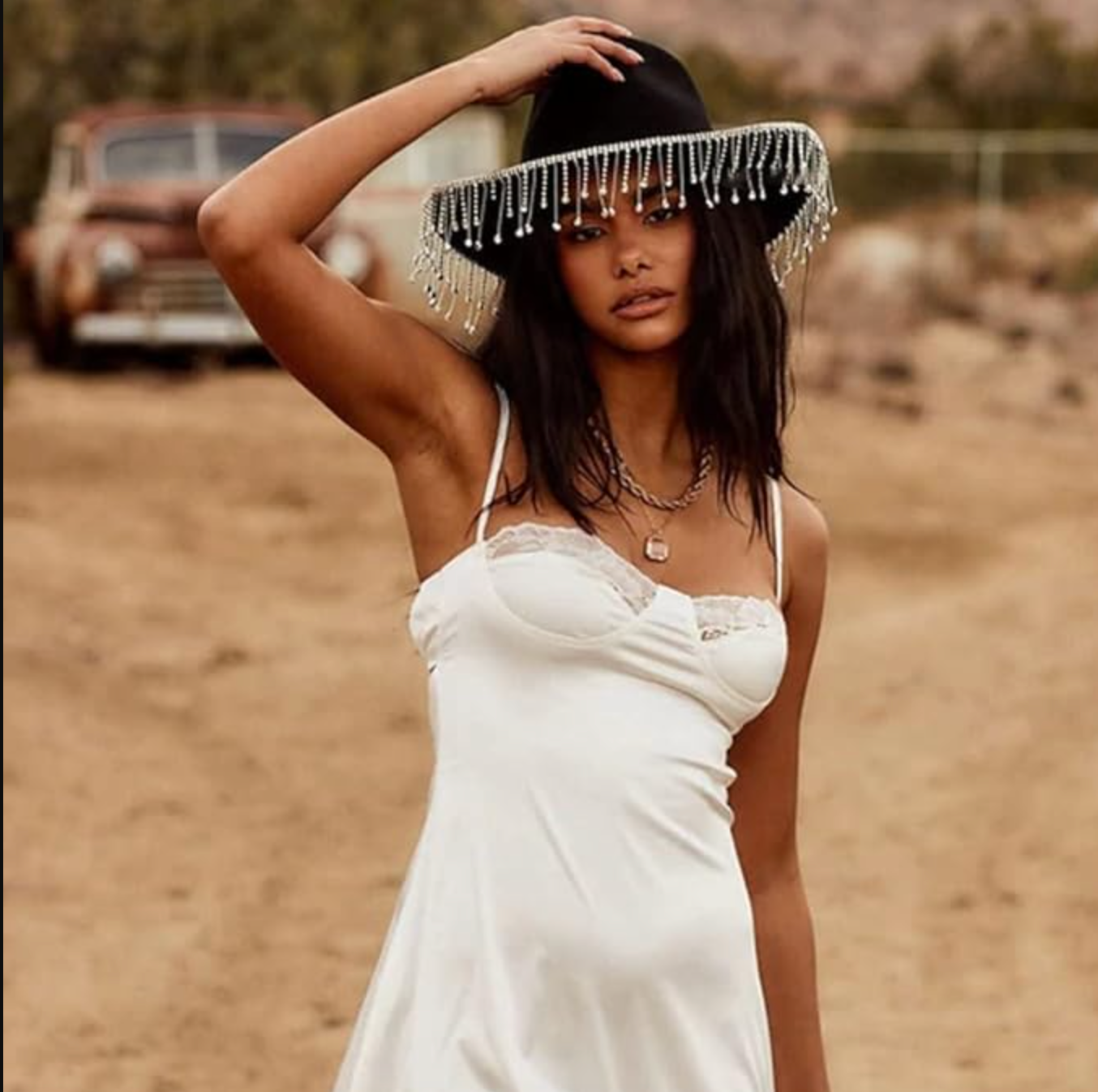 Cowgirl Hat Festival Outfit Fringe Sequin Hat Sequin Cowboy Hat Bachelorette Outfit