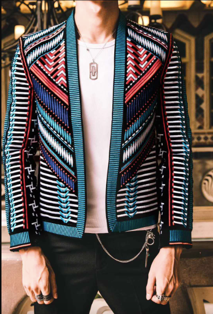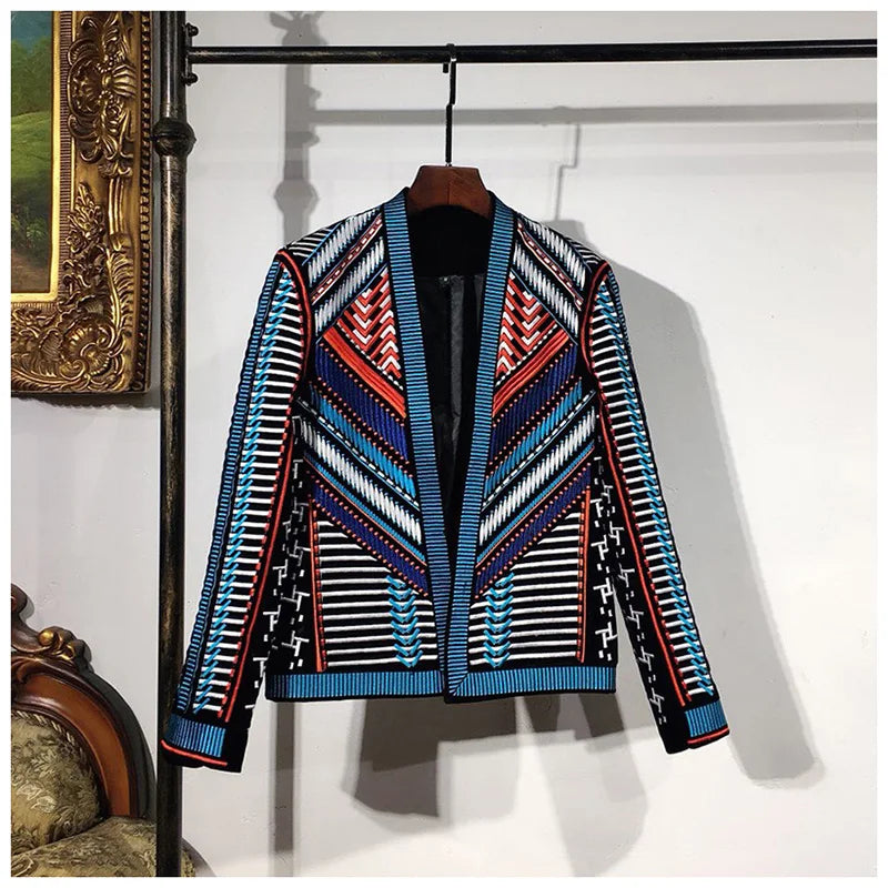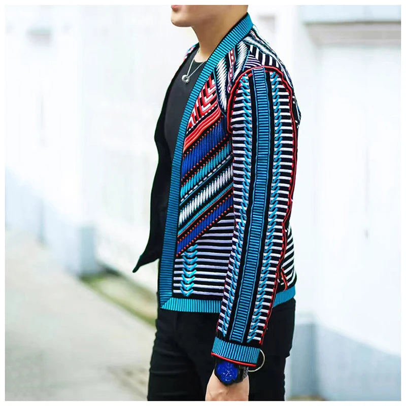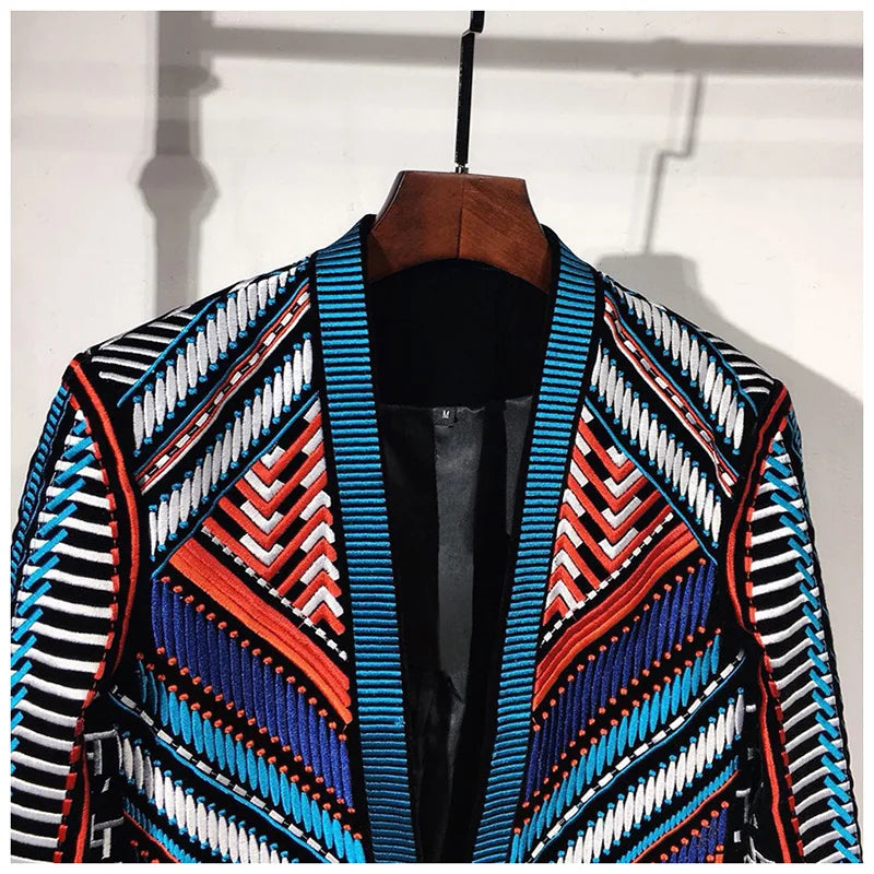 Party Jacket Men's Tuxedo Blazer Embroidery Tribal Suit