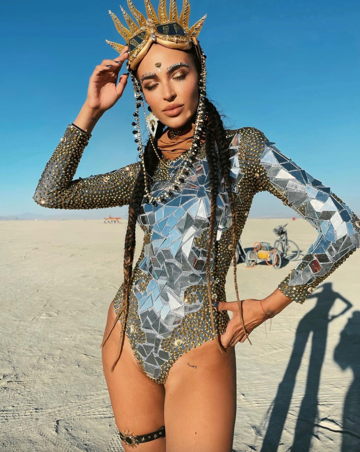 Rhinestone Bodysuit Jumpsuit Mirror Sequin Futuristic Crystal Disco Costume Party Festival outfit Rave