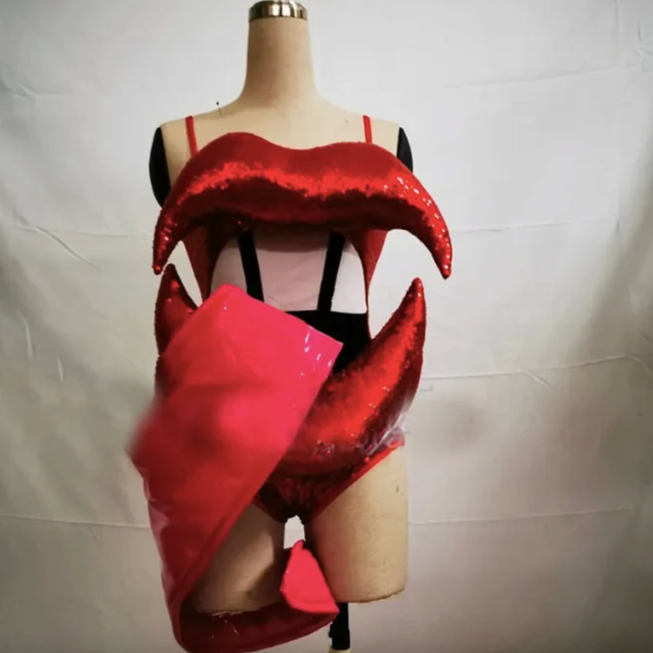 Halloween Costume Performance Show Lips Red Bodysuit Show Girls Sequin Bodysuit Drag Queen Carnaval Costume