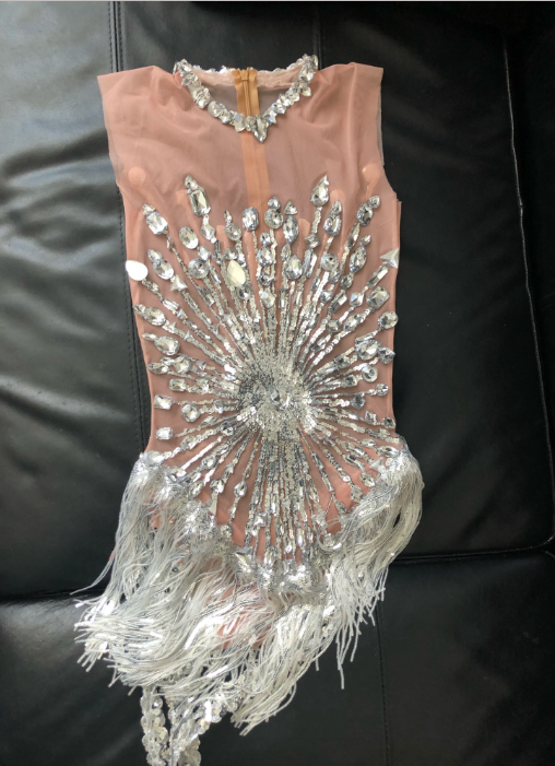 Party Dress Rhinestone Nude Mesh Fringe Dress Birthday Dress Sequin Bodysuit Jumpsuit