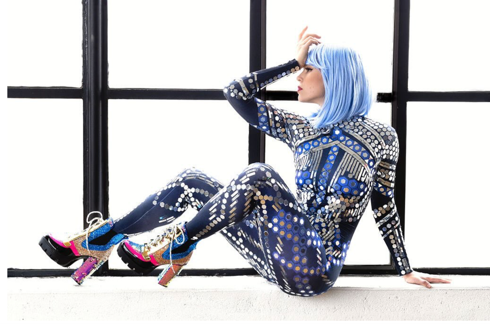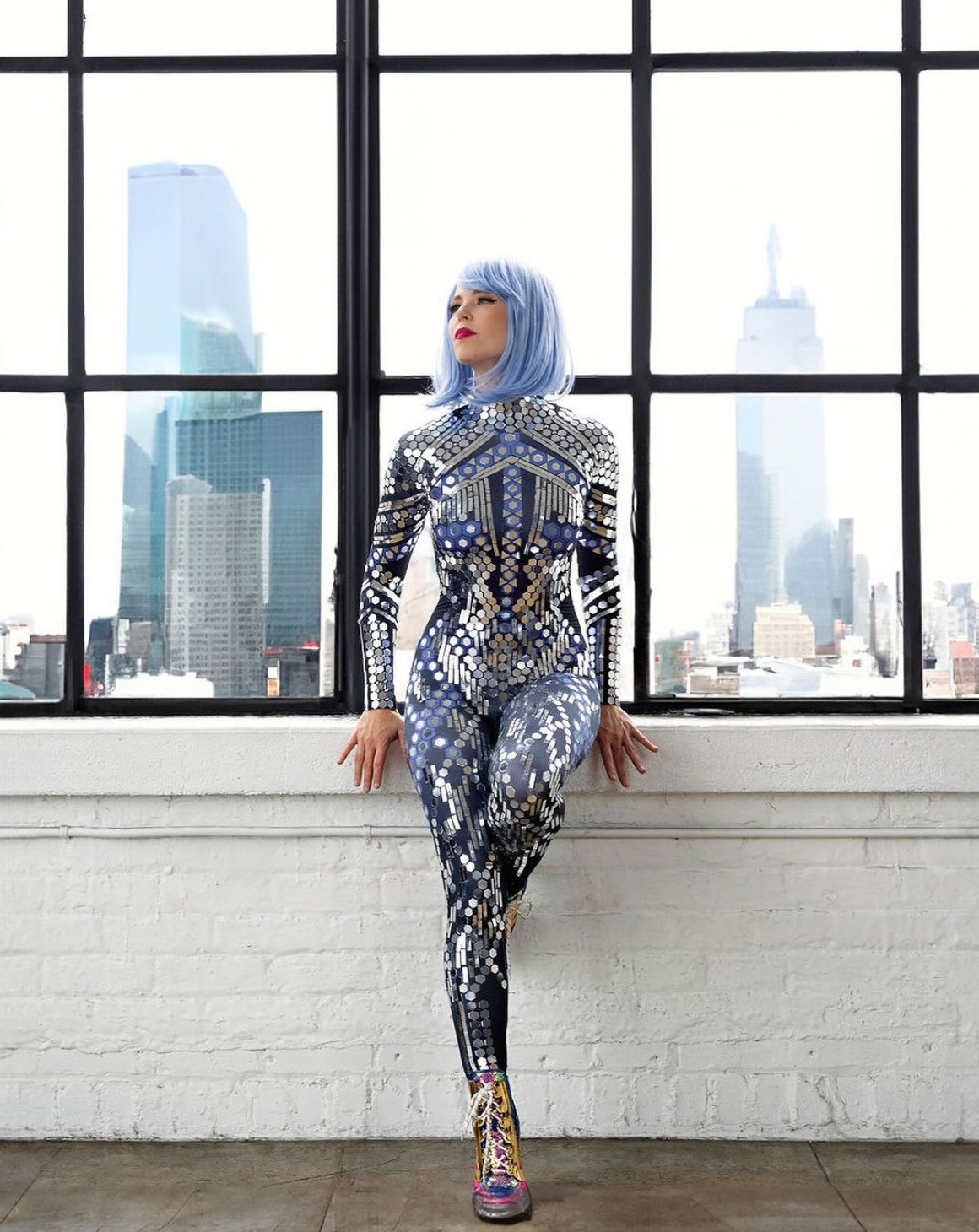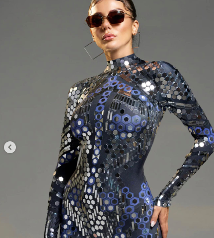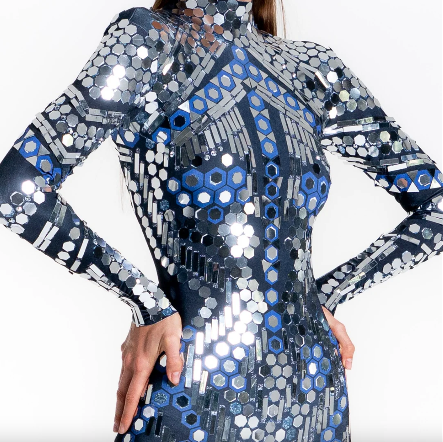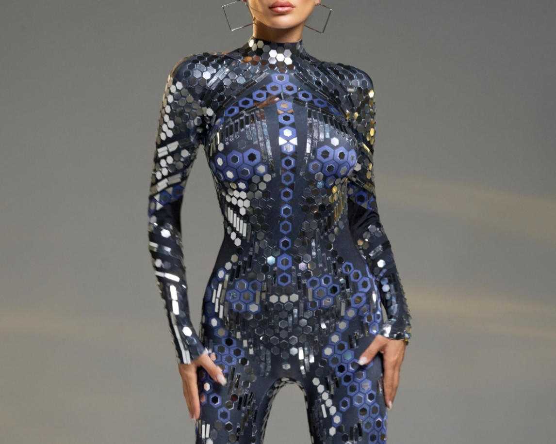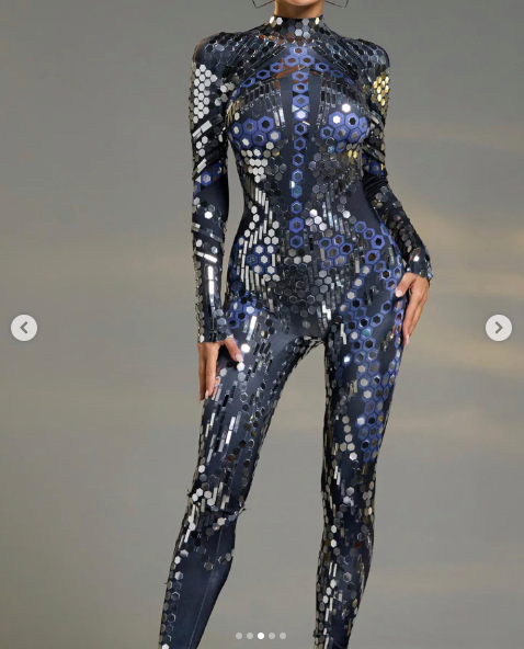 Festival Mirror Jumpsuit Party Costume Black Catsuit party outfit. Bodysuit
