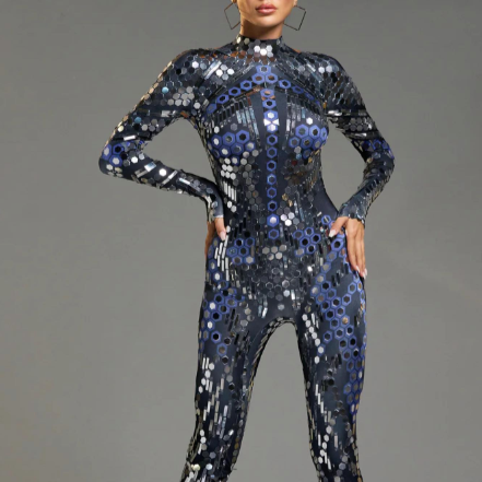 Festival Mirror Black Jumpsuit Mirror Catsuit Party Performance Costume Festival Outfit