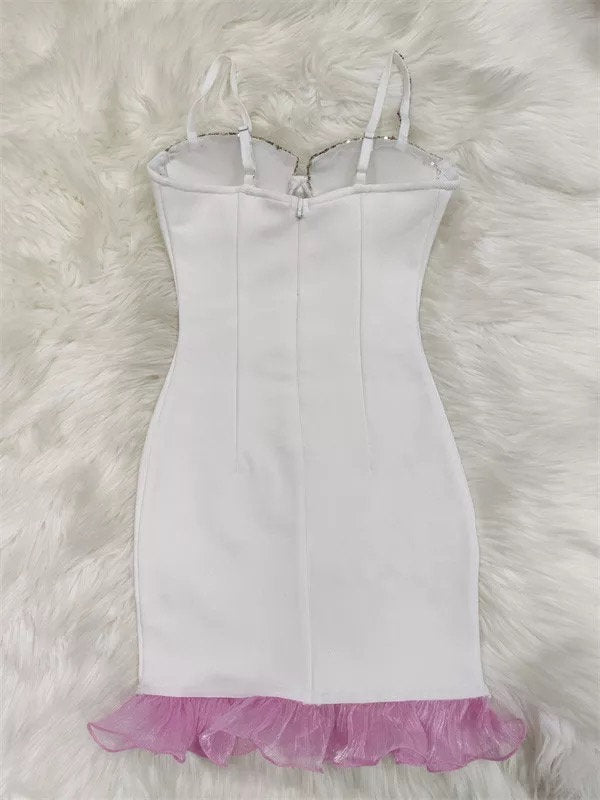 Rhinestone Dress Mermaid Dress Tassel Embellished Bride Party Dress White Mini Dress