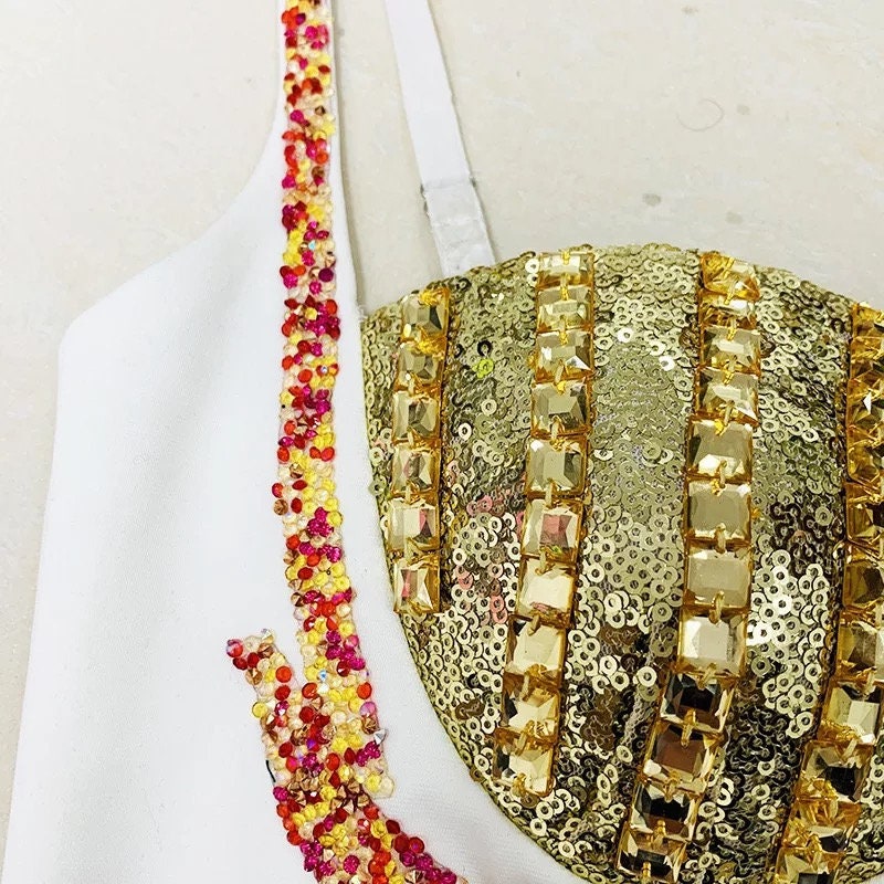 Festival Outfit Sequin Rhinestone Ocean Mermaid Dress Tassel Embellished Bodysuit Bride Bachelorette Party Bride Birthday Party Sexy Dress Low stock Need to order for an Event? Please place your order on time. Express delivery available at checkout. Sequin, sparkling, rhinestone Mermaid Dress : White/Silver or Gold Size: S, M, L Stage Performance