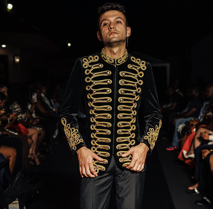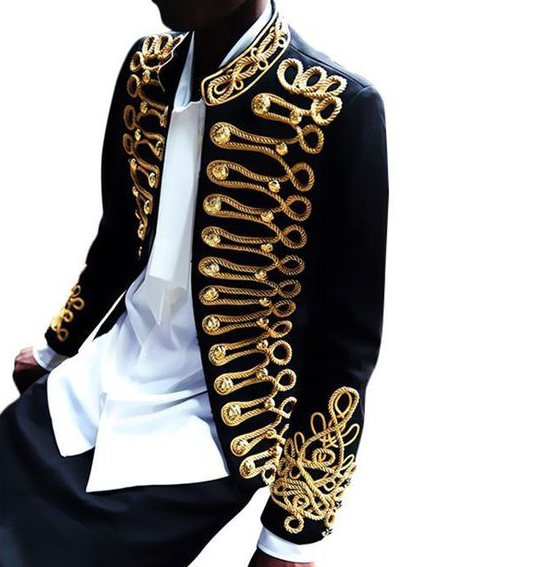 Festival Party Jacket Men's Tuxedo Blazer Gold Black Captain Jacket Burning Man