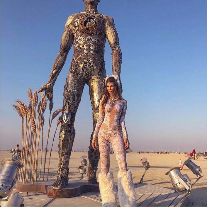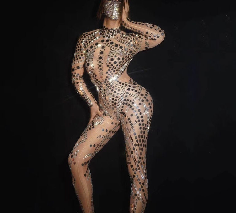 Festival Outfit Sequin Catsuit Burning Man Disco Crystal Costume Rhinestone