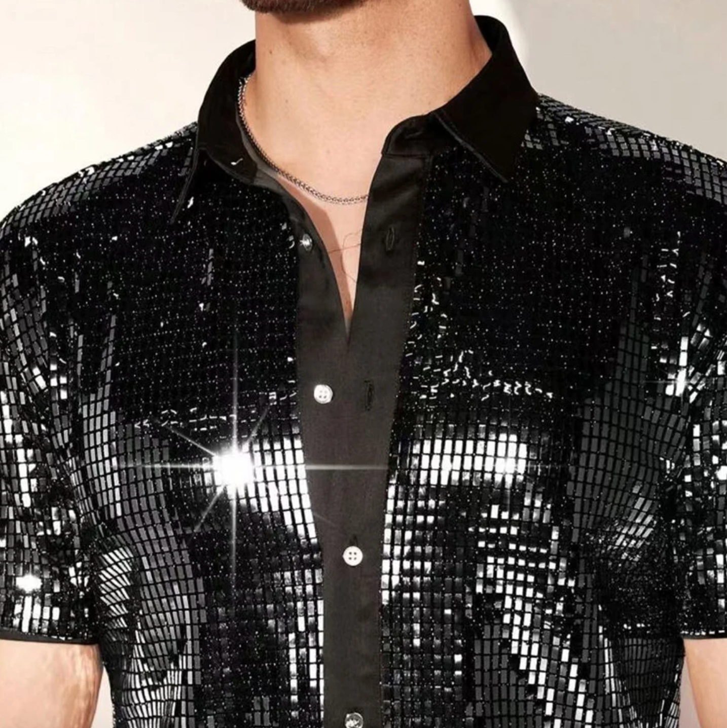 Men's Shirt Nightclub Fashion 70s Disco Shirt Short Sleeve Festival Shirt Embellished Shirt Eros
