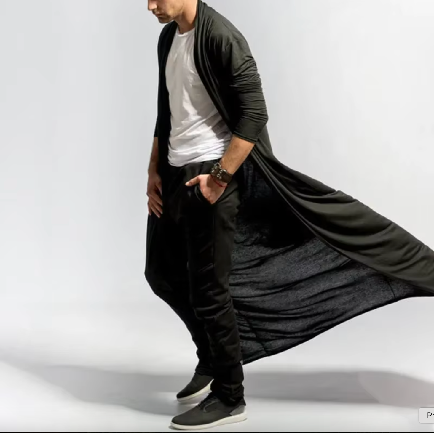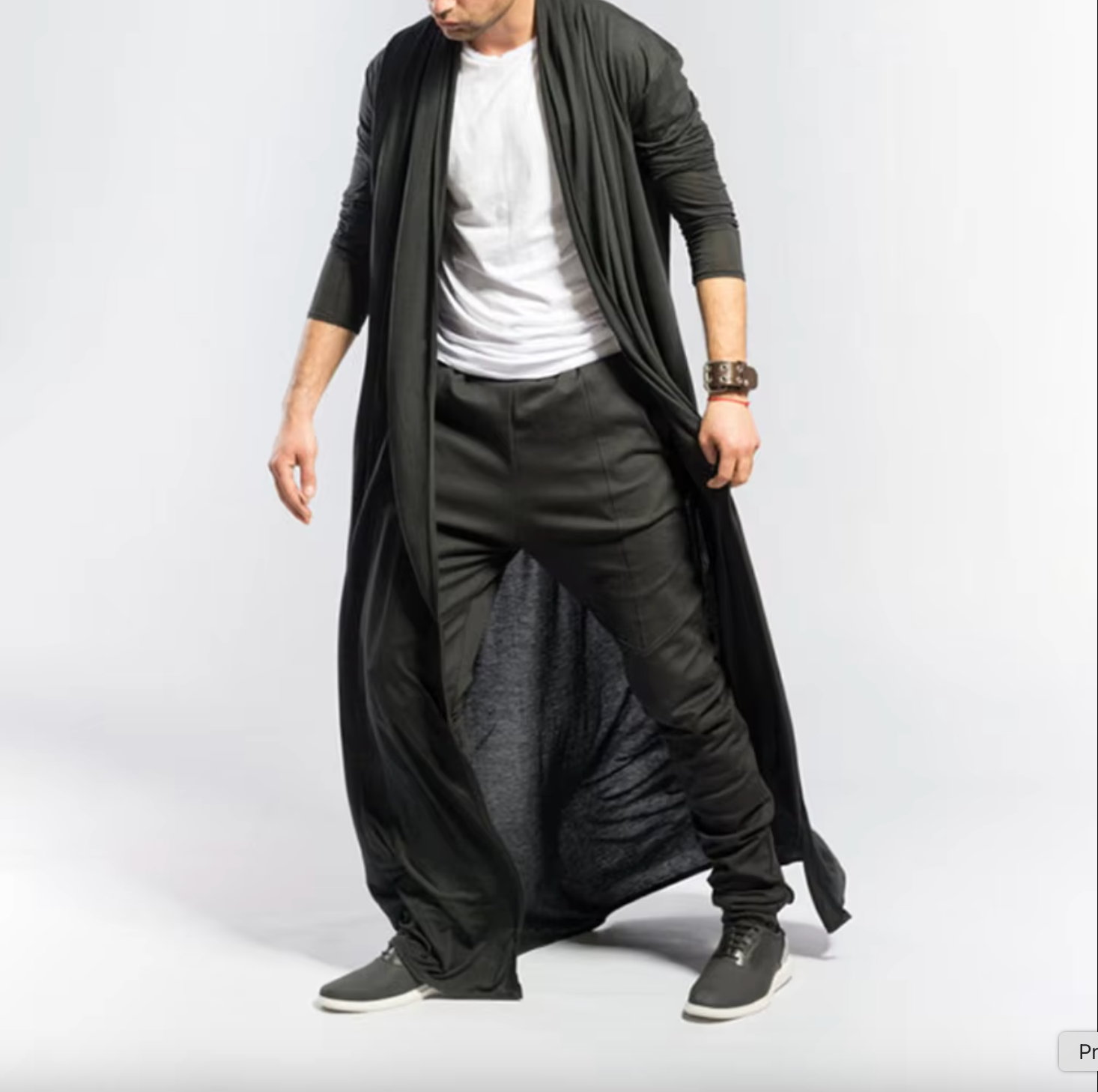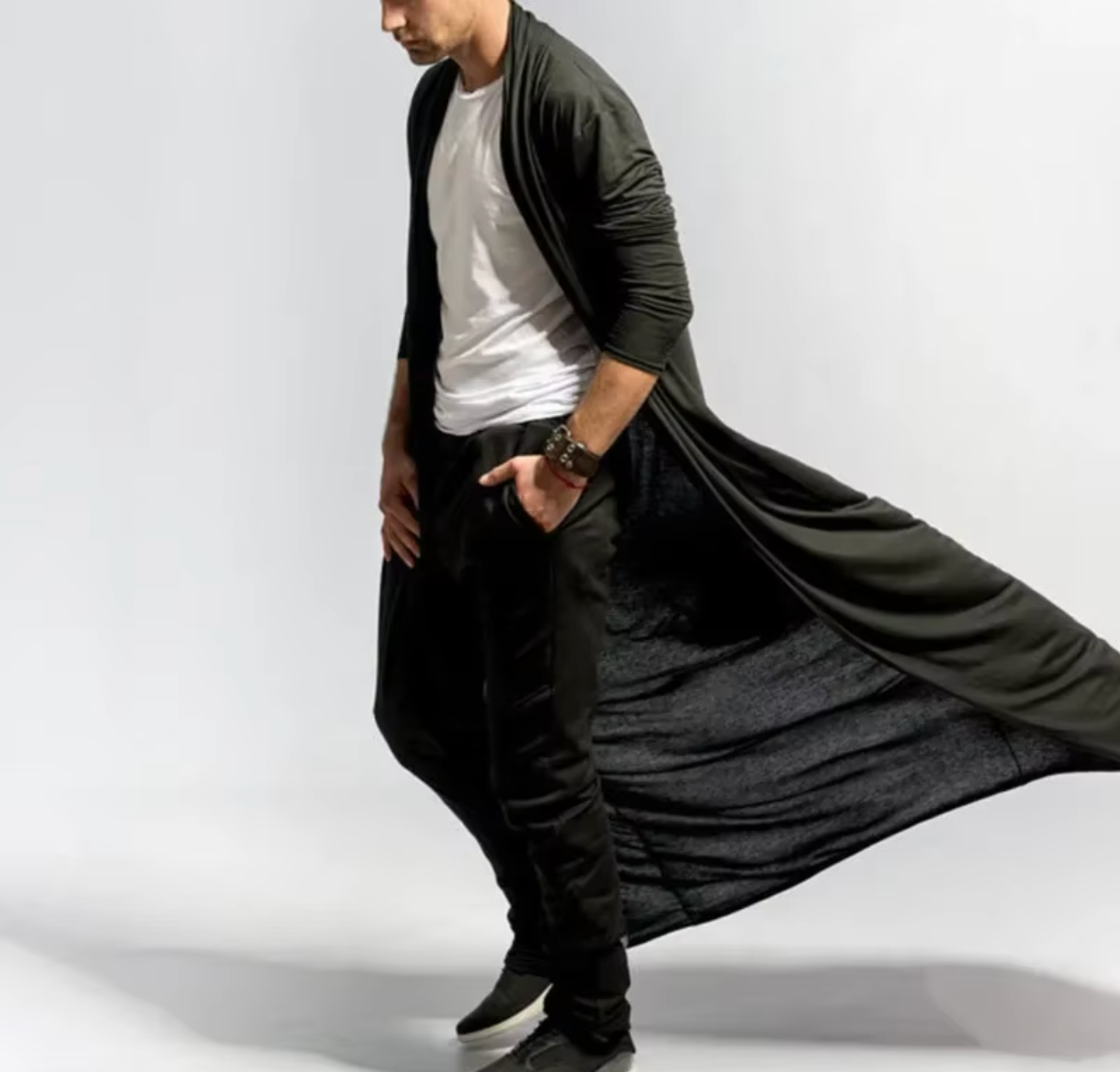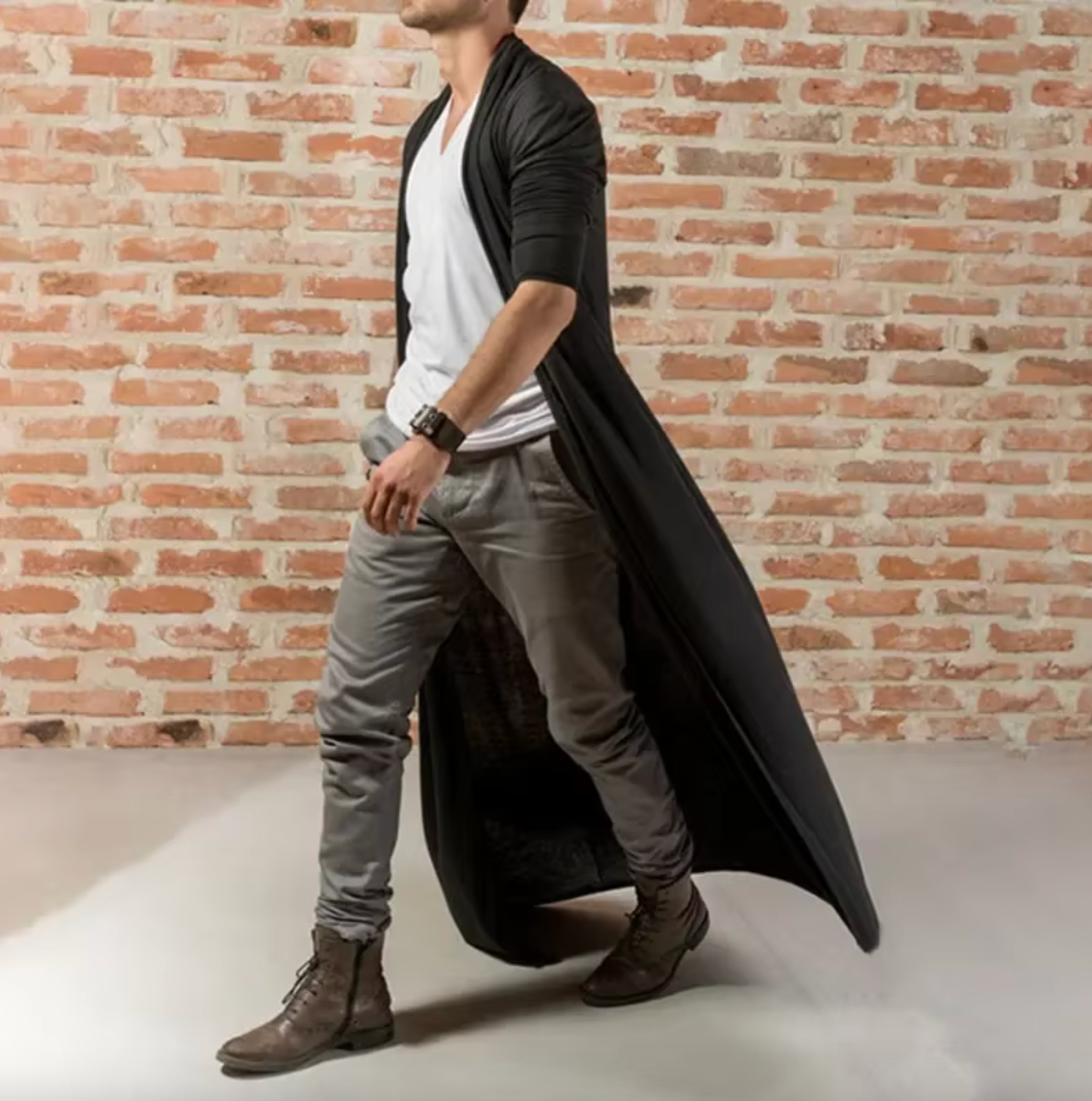 Men's Black Cardigan Festival Party Outfits For Men Boho Hipster Style Unisex Long Blazer Gilet For Men Designed For Burning Man.