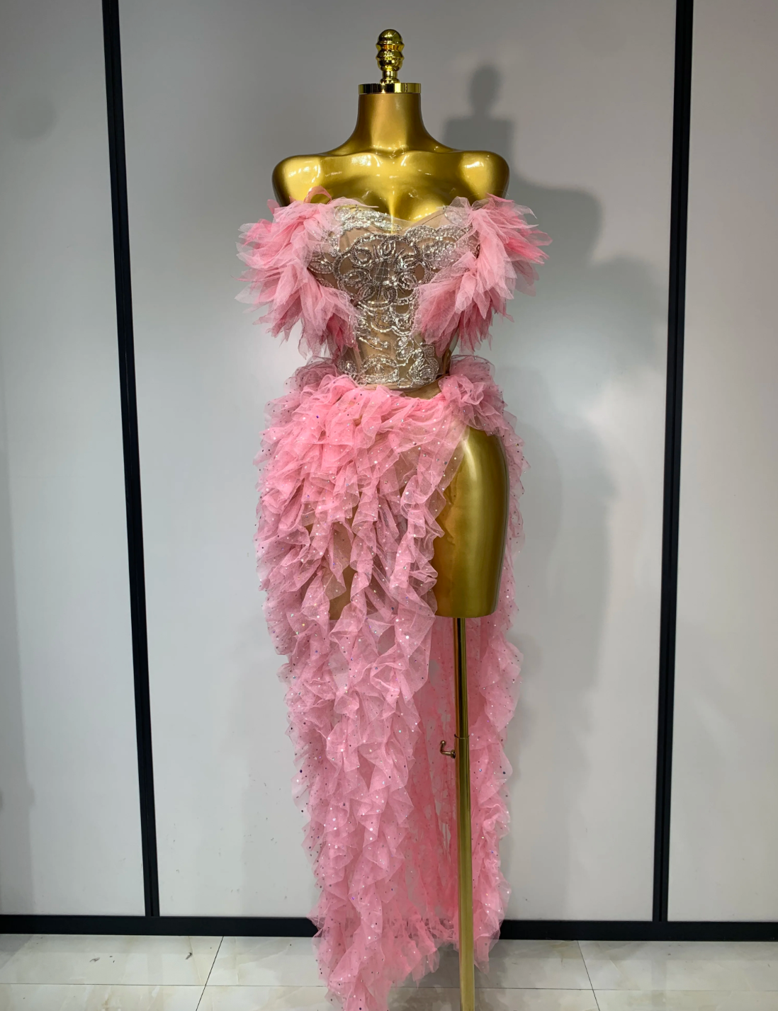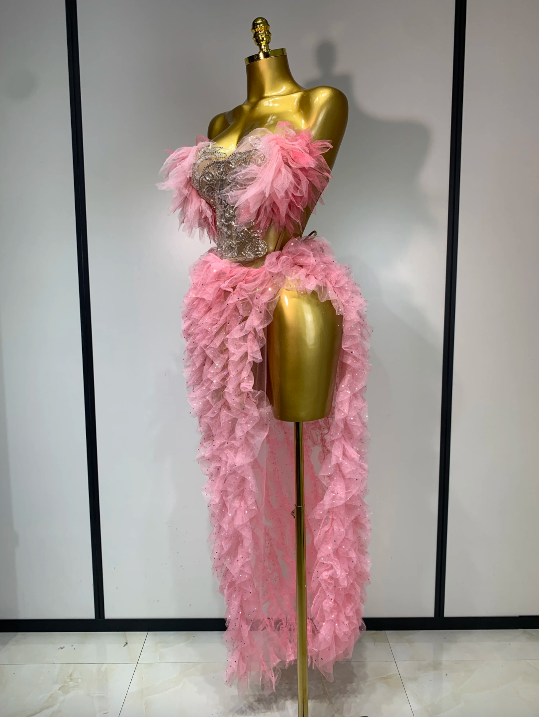 Pink Party Dress Women Corset Long Dress High Split Nightclub Party Birthday Dress Singer Stage Dress