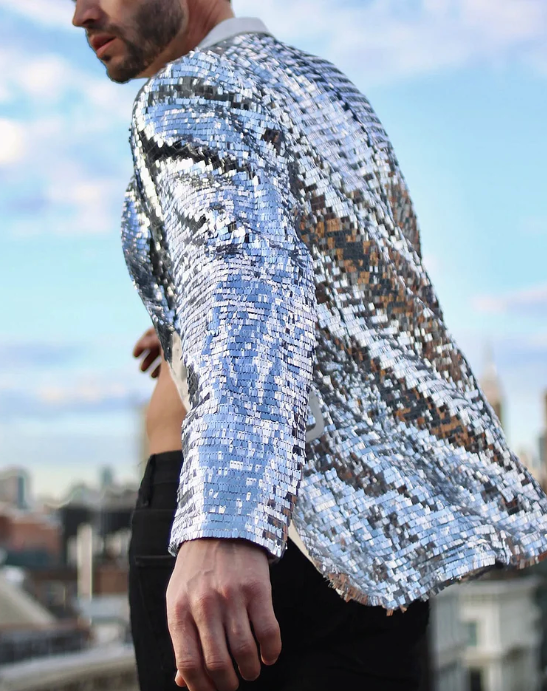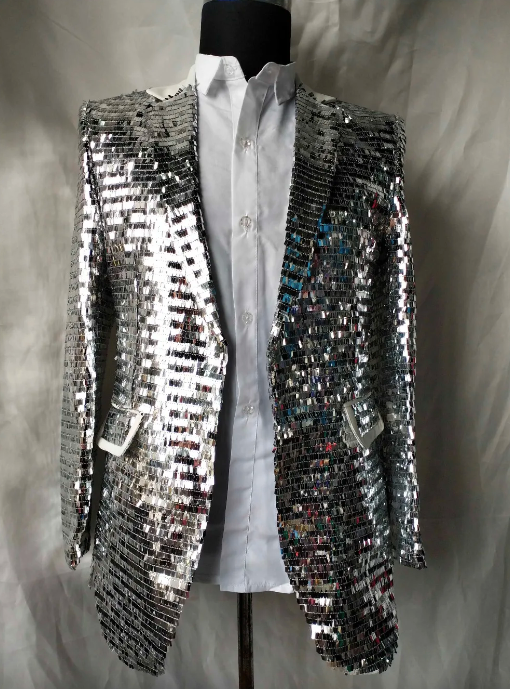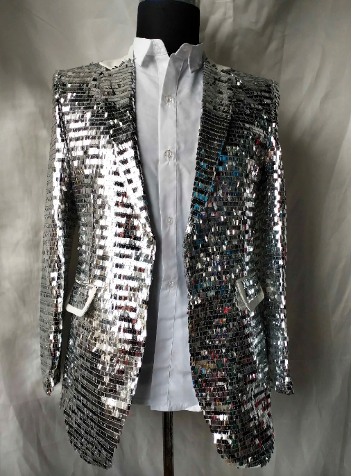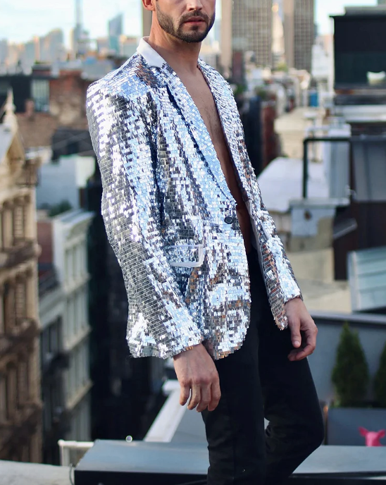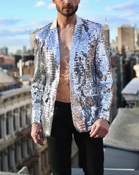 Party Outfit For Men's Disco Costume Mirrored Blazer Kimono Blazer Men's Festival Outfit