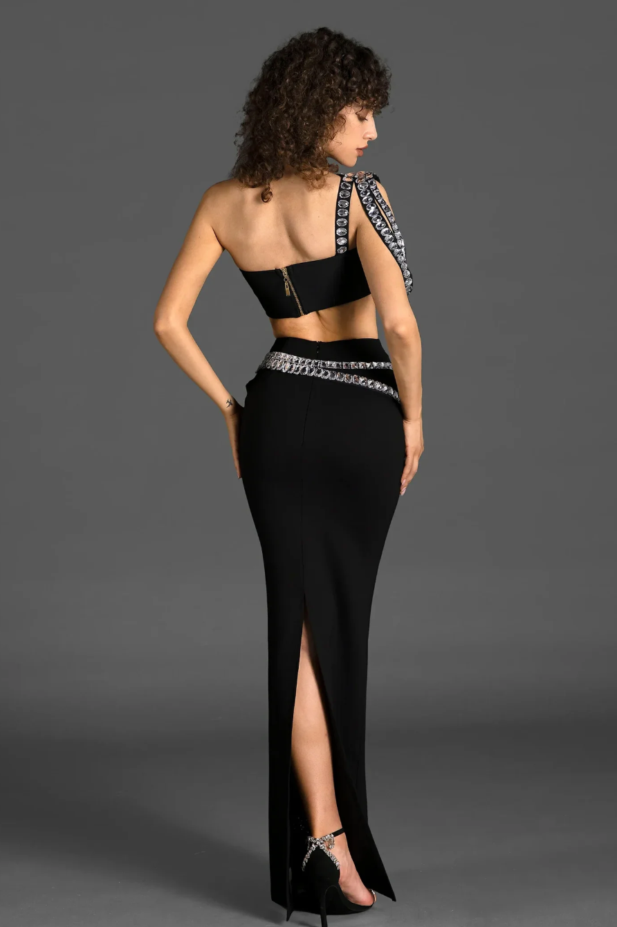 Party Dress Celebrities Red Carpet Stage Costume Women Bandage Sexy 2 Pieces Bodycon Long Dress Nightclub Party Birthday Dress AMIA