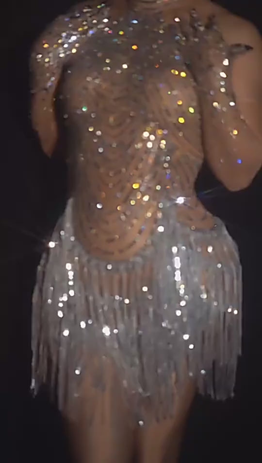 Rhinestone Gloves Stiletto False Nails Nude Silver Swarovski Costume Rhinestone Costume Vegas Show Girls Crystal