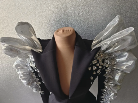 Rhinestone Dress Long Blazer Black Dress Party Dress Performance Outfit