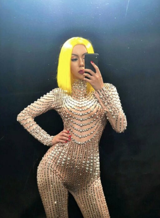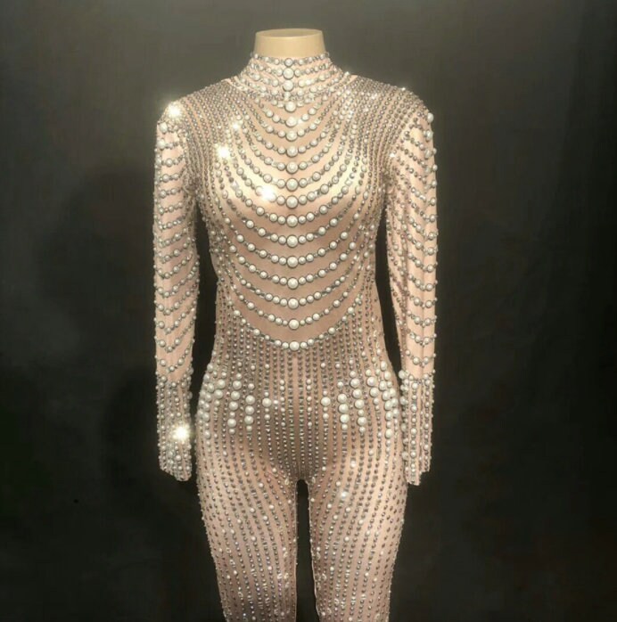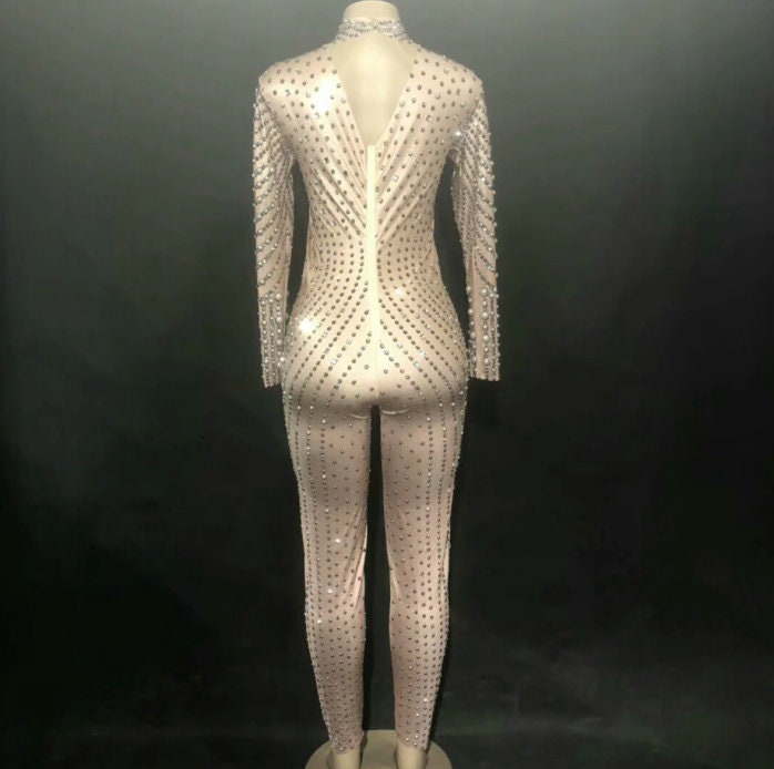Rhinestones Jumpsuit Crystal Festival Outfit Rave Outfit Party Sequin Catsuit
